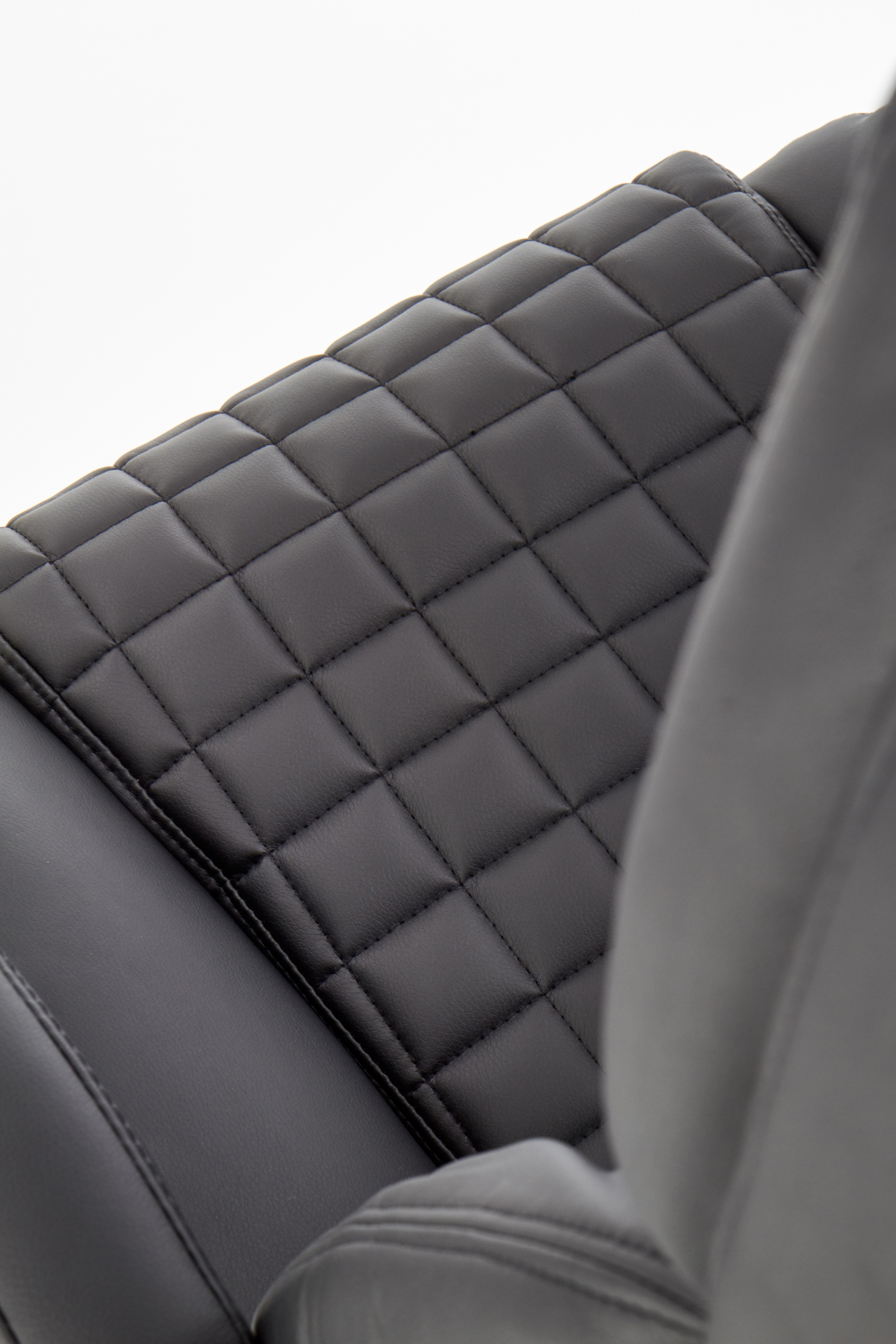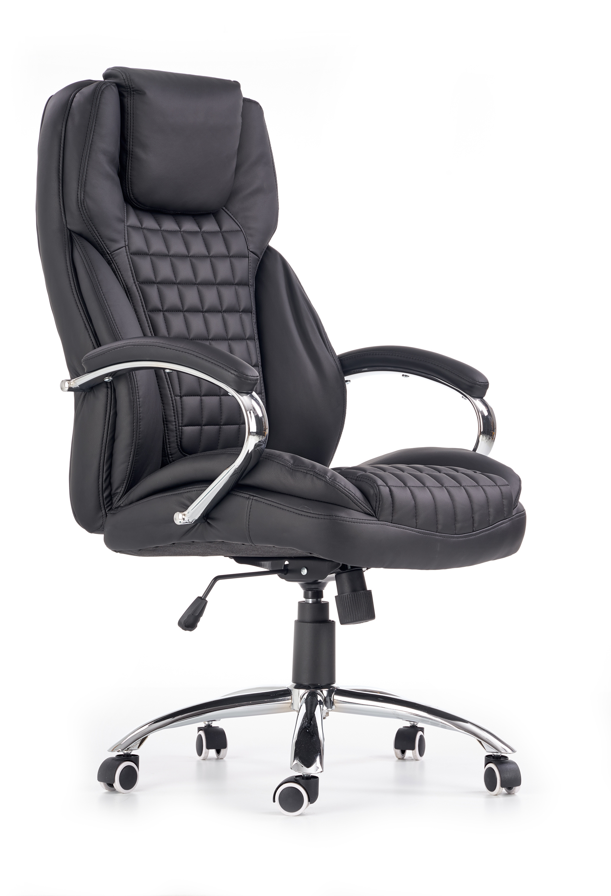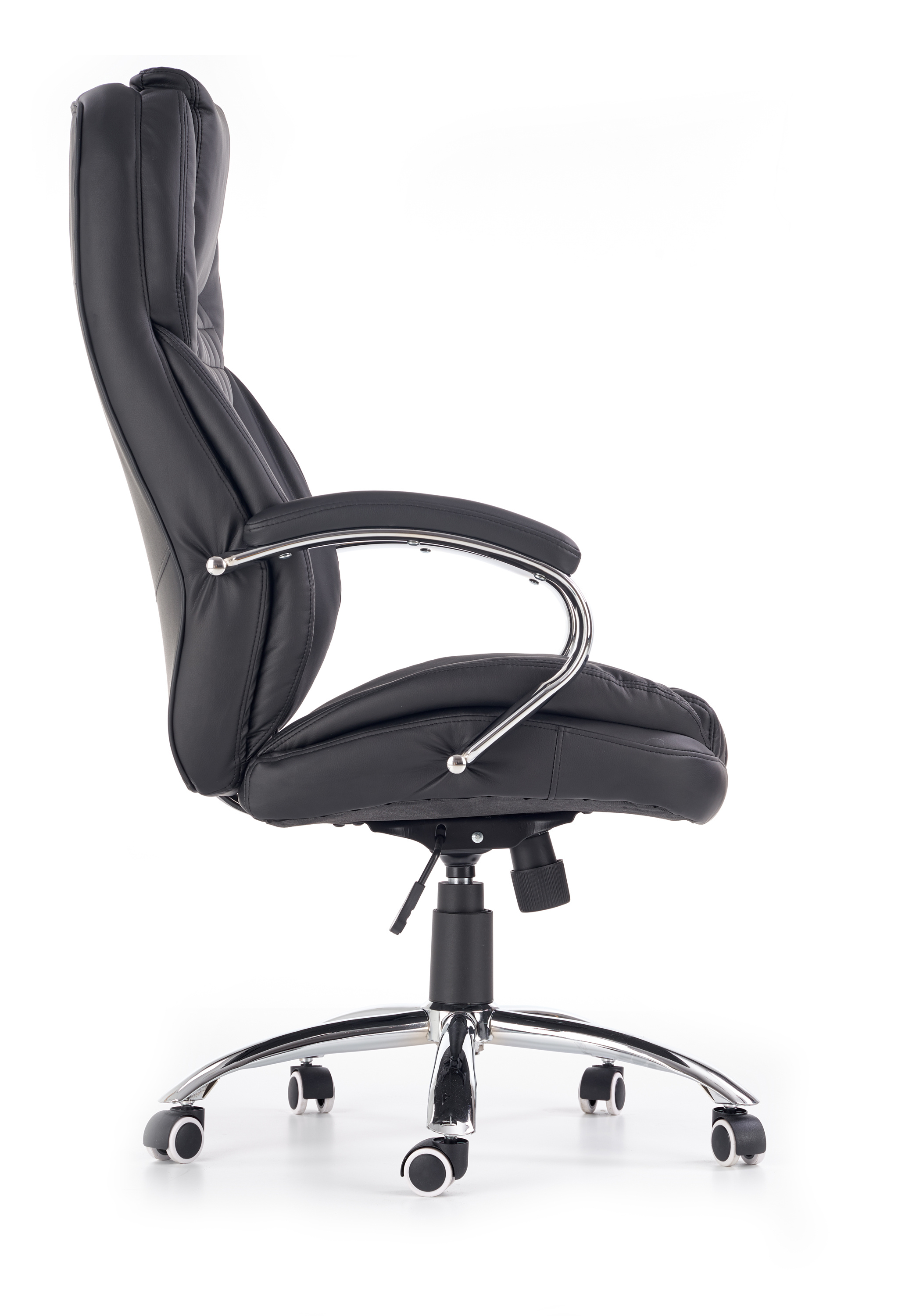 Kancelářské křeslo je vyrobeno z eko kůže v barvě černé. Křeslo je s područkami a s mechanismem TILT. Pohodlí vám zajistí zvýšený opěrák zad s posílenou výplní v oblasti hlavy, čalouněné područky a ergonomicky tvarovaný sedák. Maximální nosnost 120 kg. Zboží dodáváme v demontu.