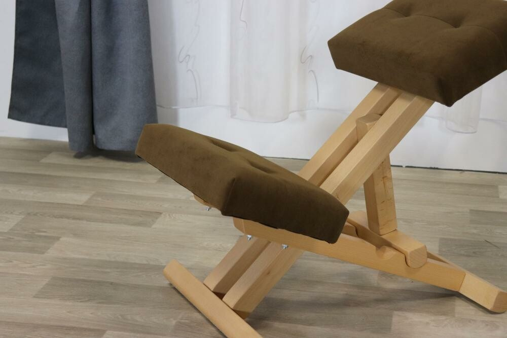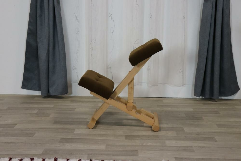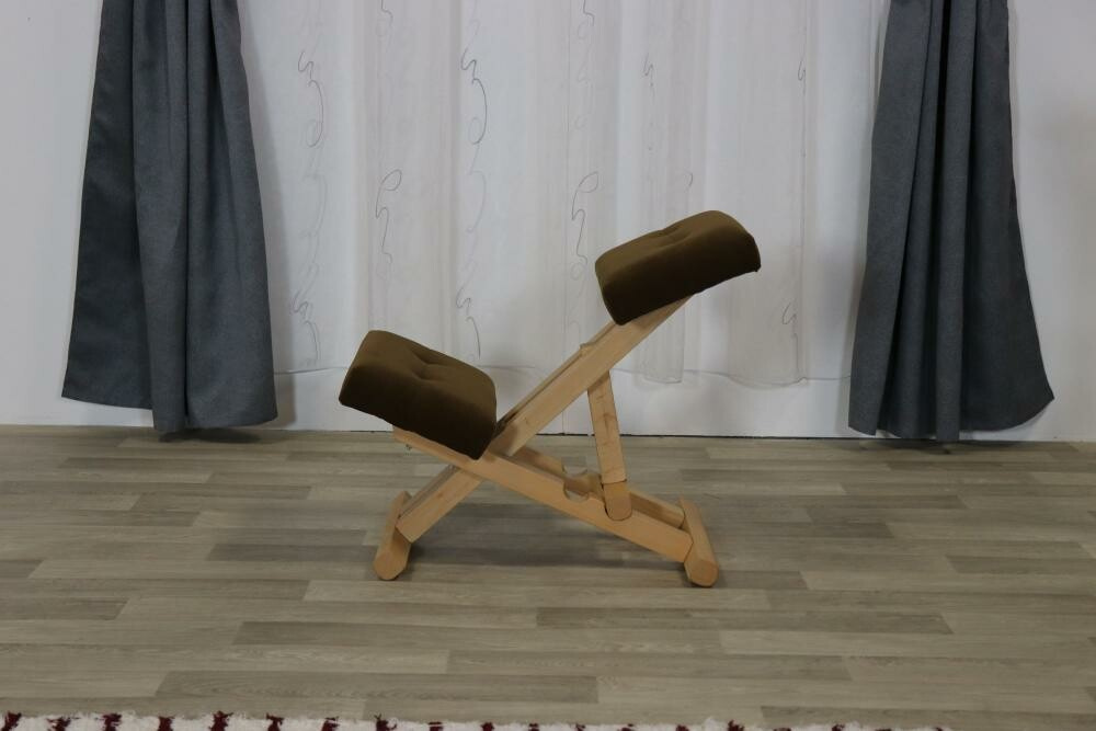 Kostra klekací židle je tvořena kombinací masivu a dřevařských velkoplošných materiálůSedátka jsou z PUR pěny. Má dvoupolohové mechanické (ruční) výškové nastavení sedu. Objednat lze v přírodní nebo středně hnědé barvě. Klekačku je možné objednat v libovolné potahové látce dle nabídky. Nosnost do 90 kg.