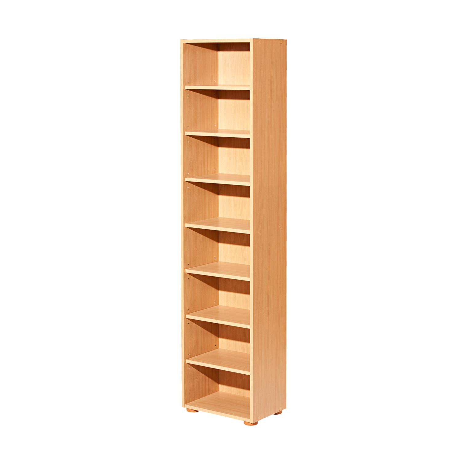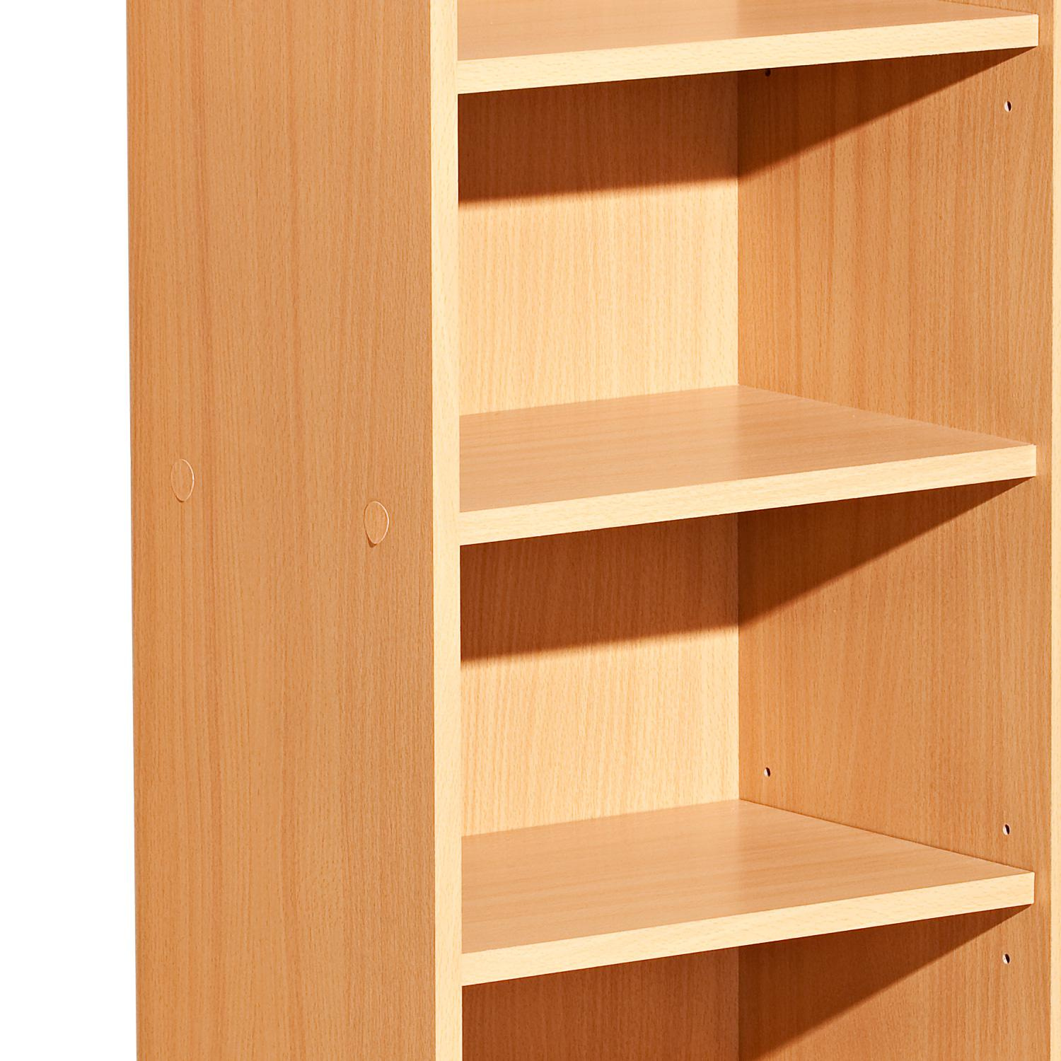 Knihovna je vyrobená z laminované dřevotřísky v barevném provedení buk. Tato knihovna disponuje 7 variabilně nastavitelnými policemi. Tato moderní knihovna je díky svému provedení vhodná k využití do všech moderních interiérů. Zboží je dodáváno v demontu.
