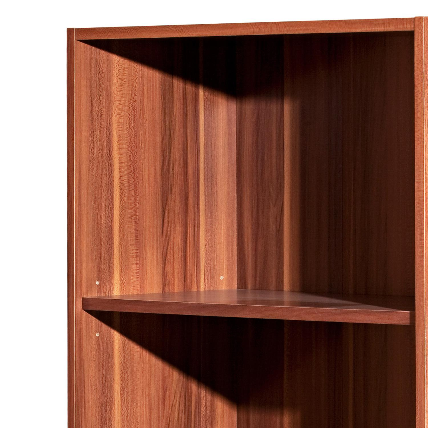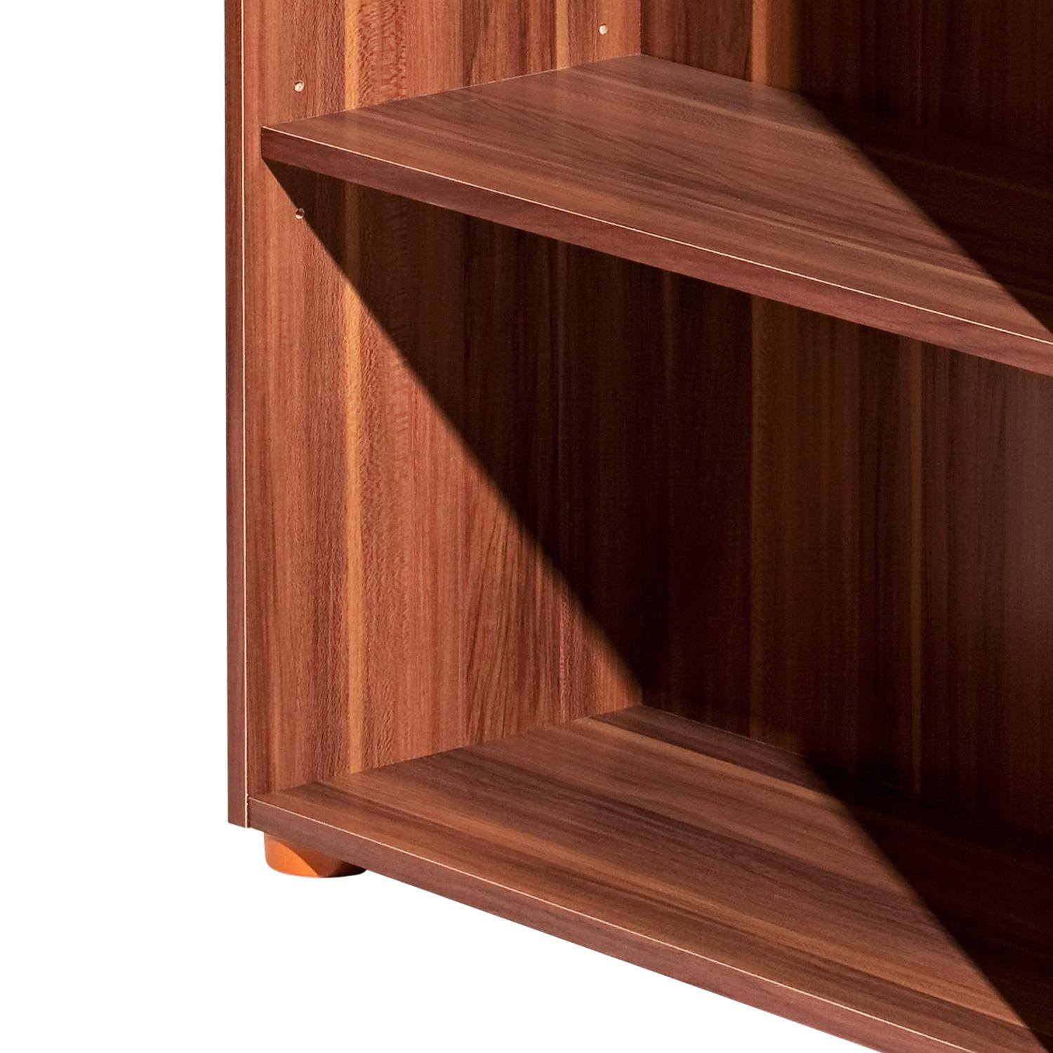 Knihovna je vyrobená z laminované dřevotřísky v barevném provedení ořech. Otevřená police disponuje čtyřmi variabilně nastavitelnými policemi. Tato moderní knihovna je díky svému provedení vhodná k využití do všech moderních interiérů. Zboží je dodáváno v demontu.