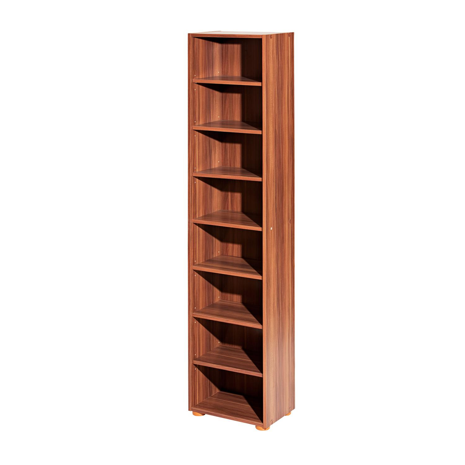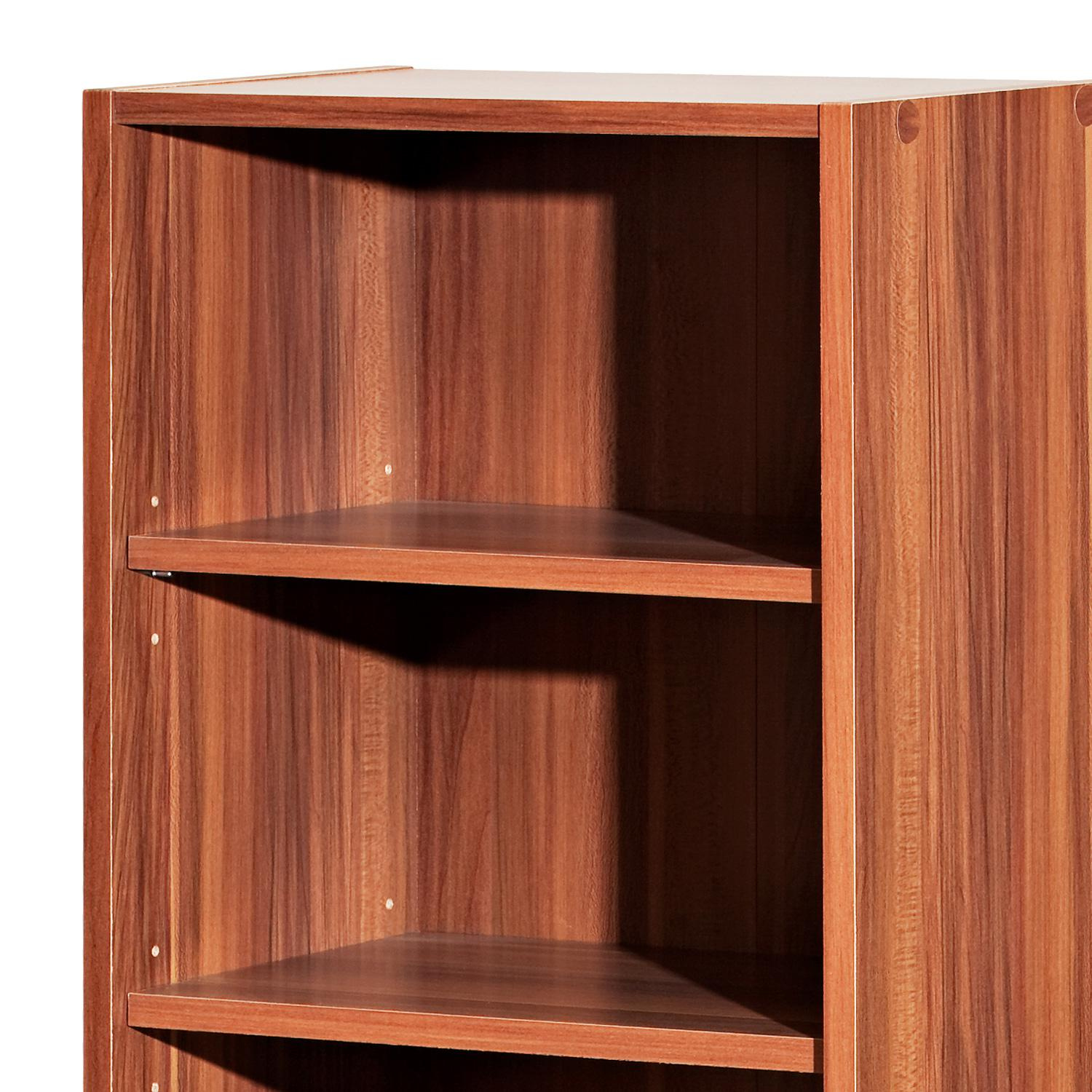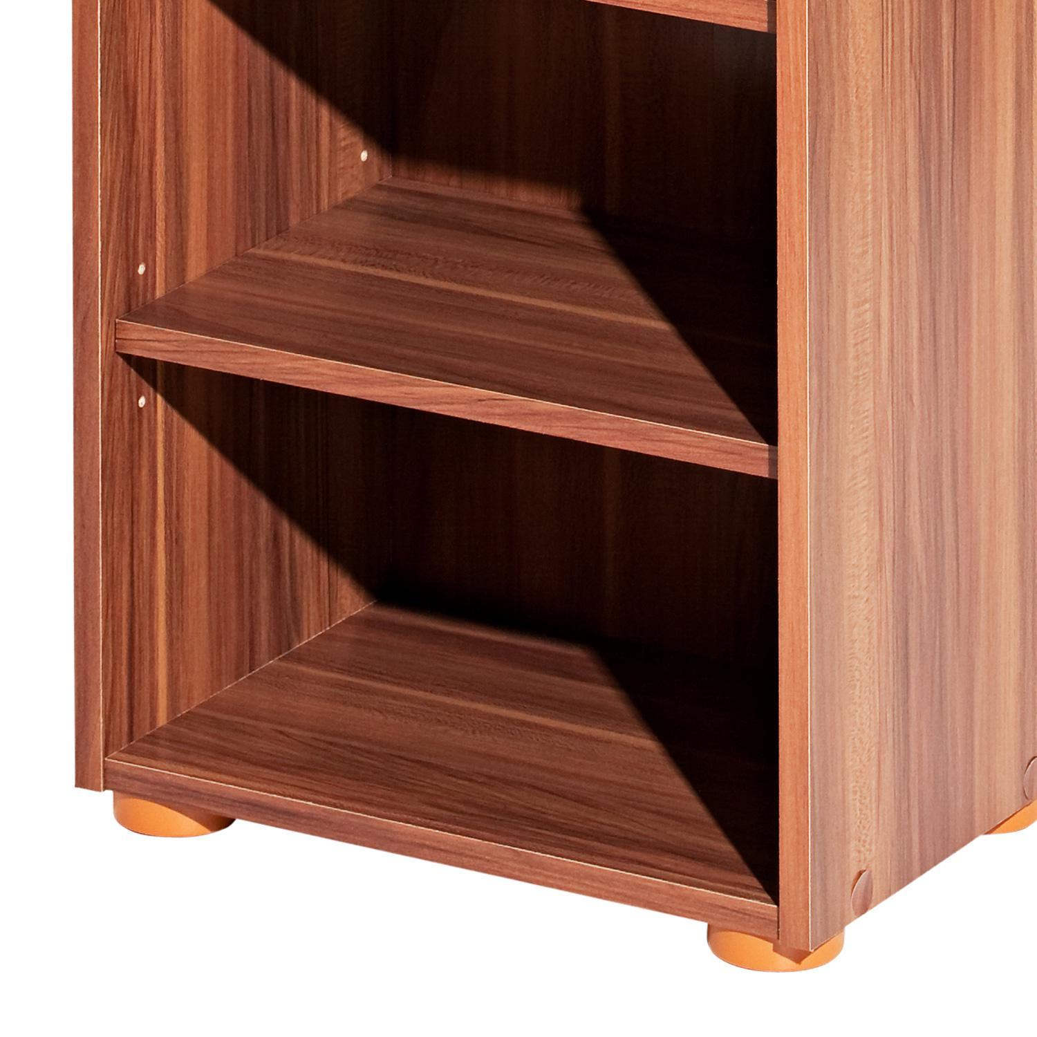 Knihovna je vyrobená z laminované dřevotřísky v barevném provedení ořech. Otevřená police disponuje sedmi variabilně nastavitelnými policemi. Tato moderní knihovna je díky svému provedení vhodná k využití do všech moderních interiérů. Zboží je dodáváno v demontu.