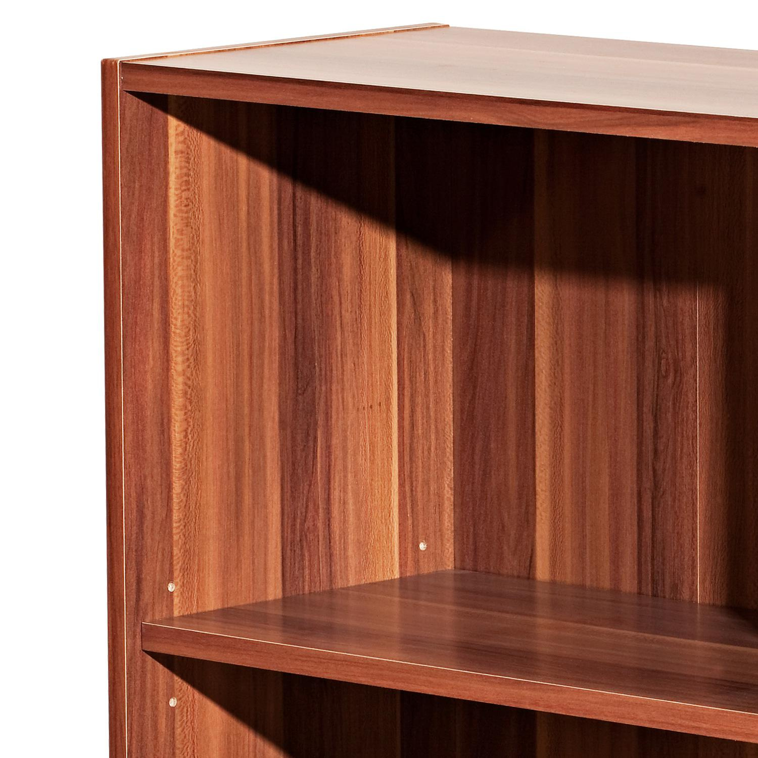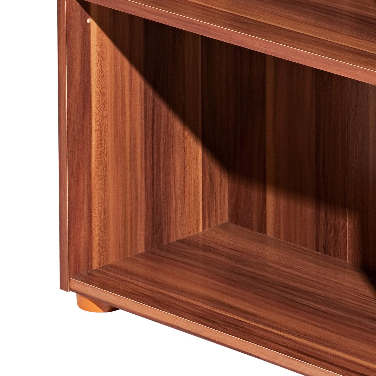 Knihovna je vyrobená z laminované dřevotřísky v barevném provedení ořech. Otevřená police disponuje třemi variabilně nastavitelnými policemi. Tato moderní knihovna je díky svému provedení vhodná k využití do všech moderních interiérů. Zboží je dodáváno v demontu.