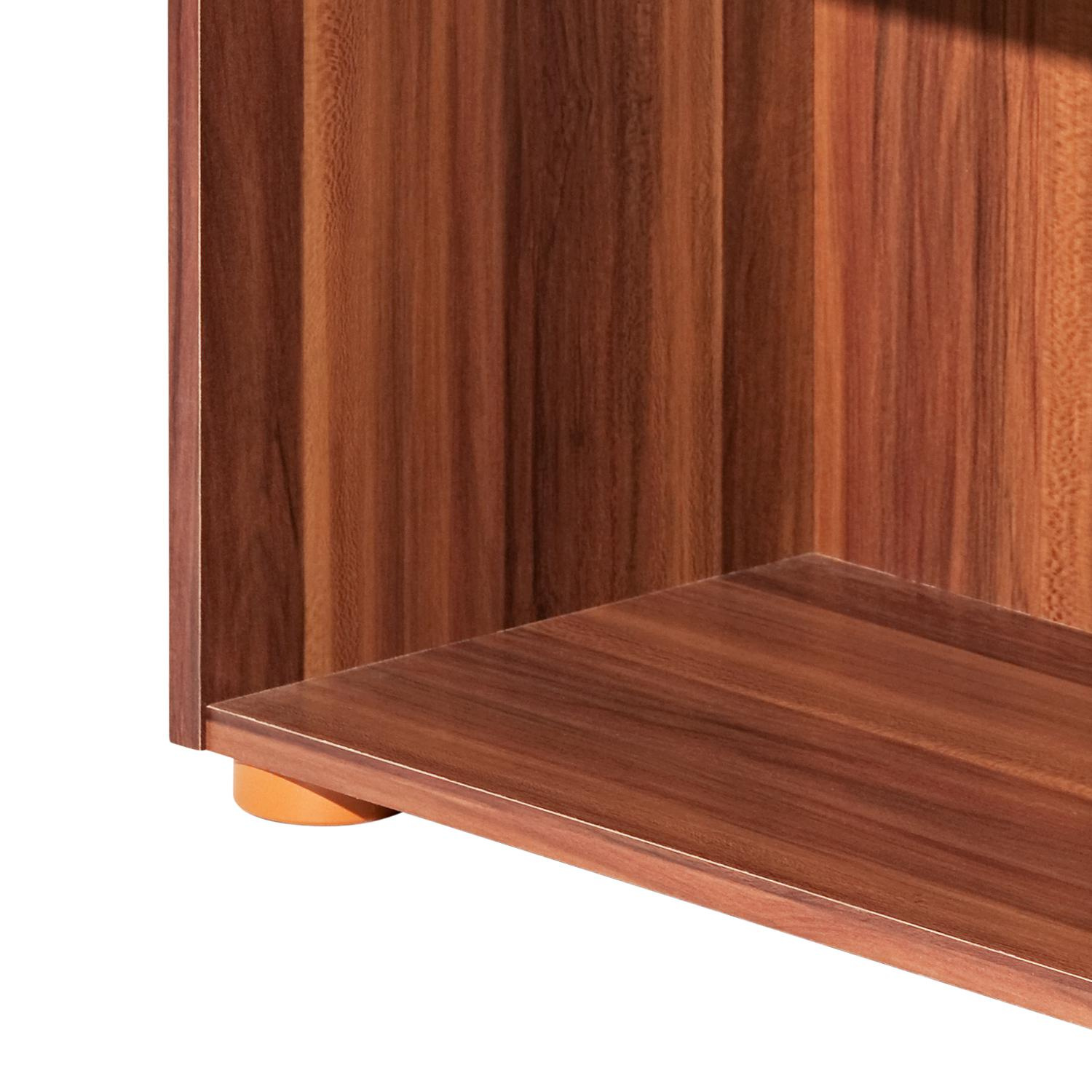 Knihovna je vyrobená z laminované dřevotřísky v barevném provedení ořech. Otevřená police disponuje 1 variabilně nastavitelnou polici. Tato moderní knihovna je díky svému provedení vhodná k využití do všech moderních interiérů. Zboží je dodáváno v demontu.