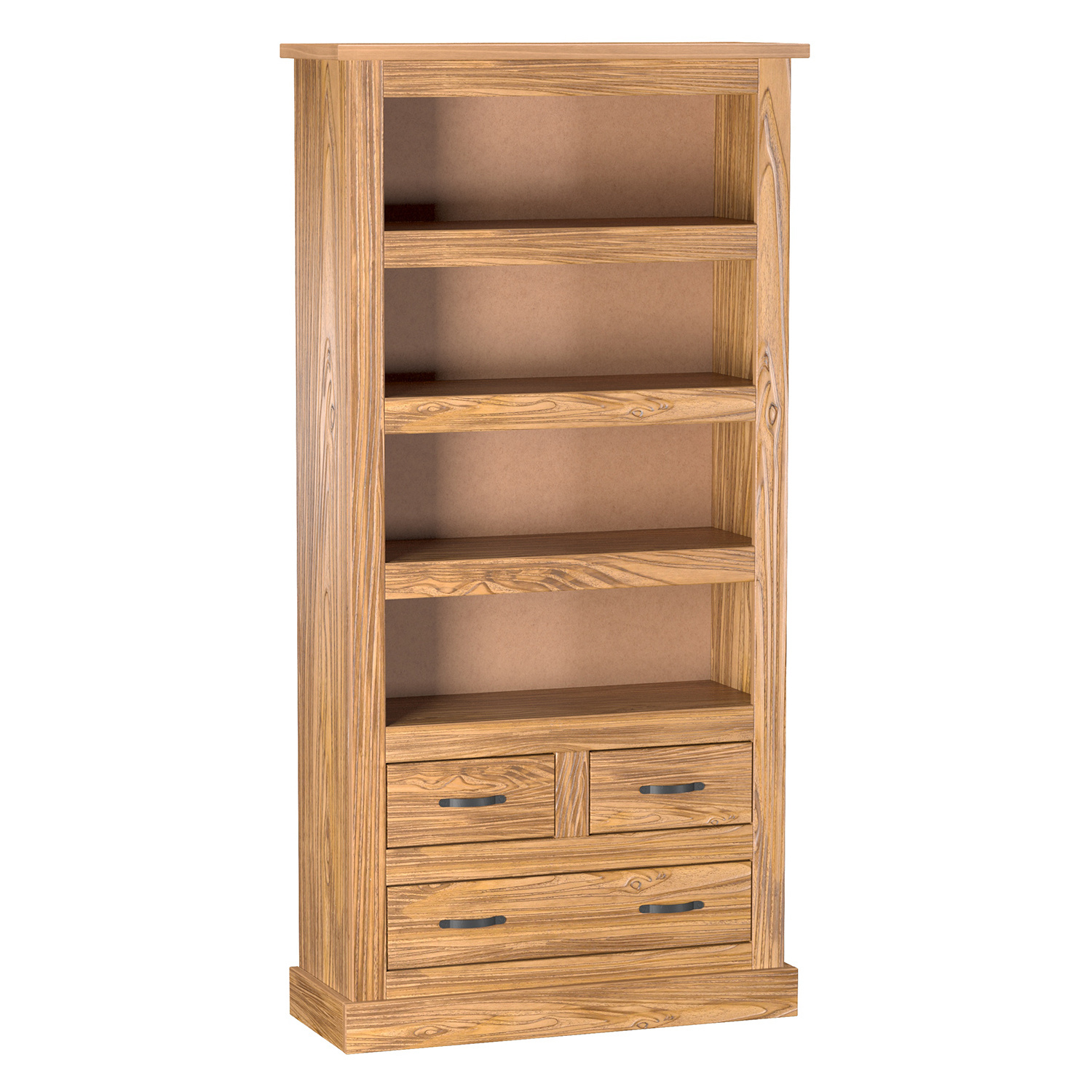 materiál masiv borovice, barevné provedení dub antik lakováno čirým lakem, vlis dřevěné struktury tři police, jedna široká a dvě úzké zásuvky součást sestavy EL DORADO