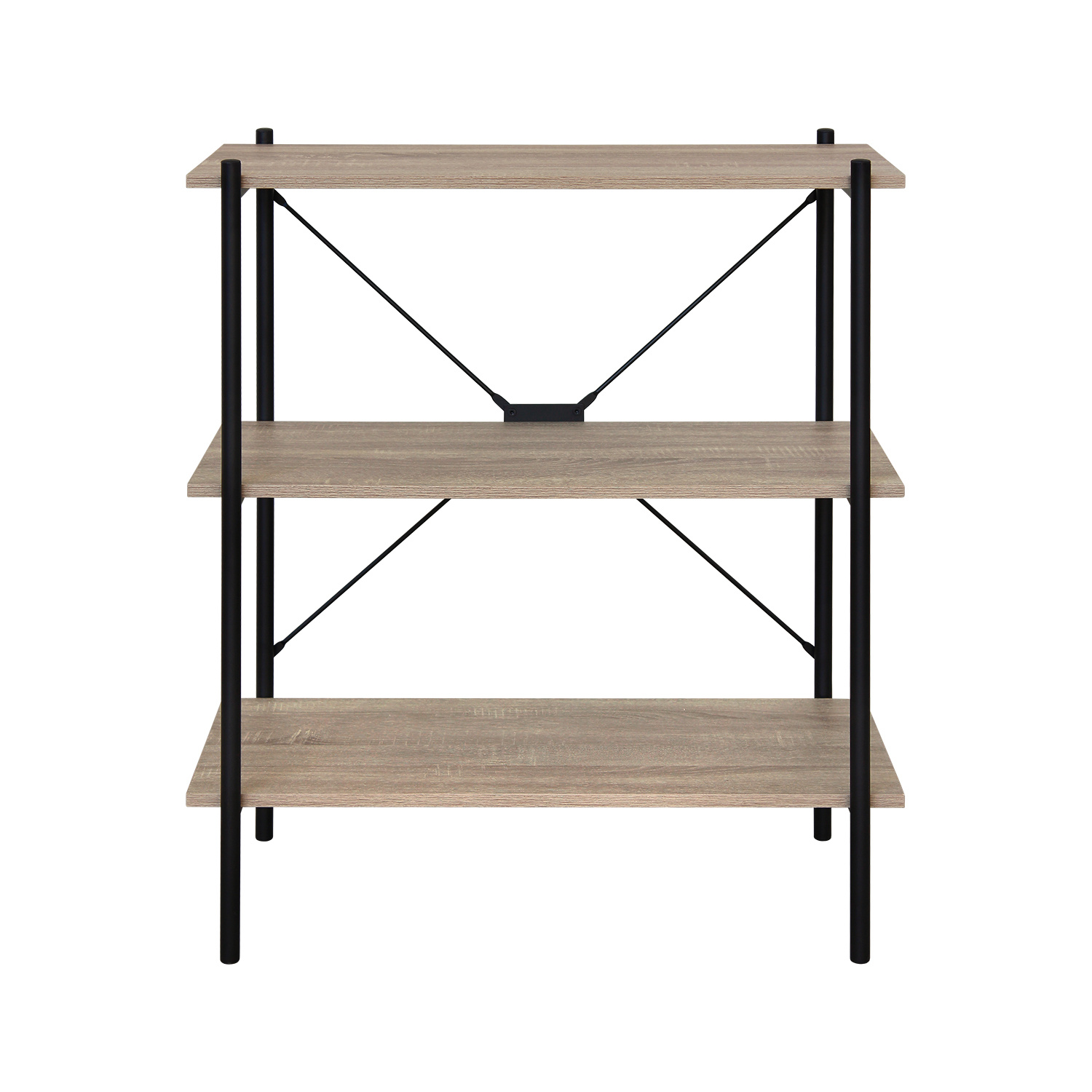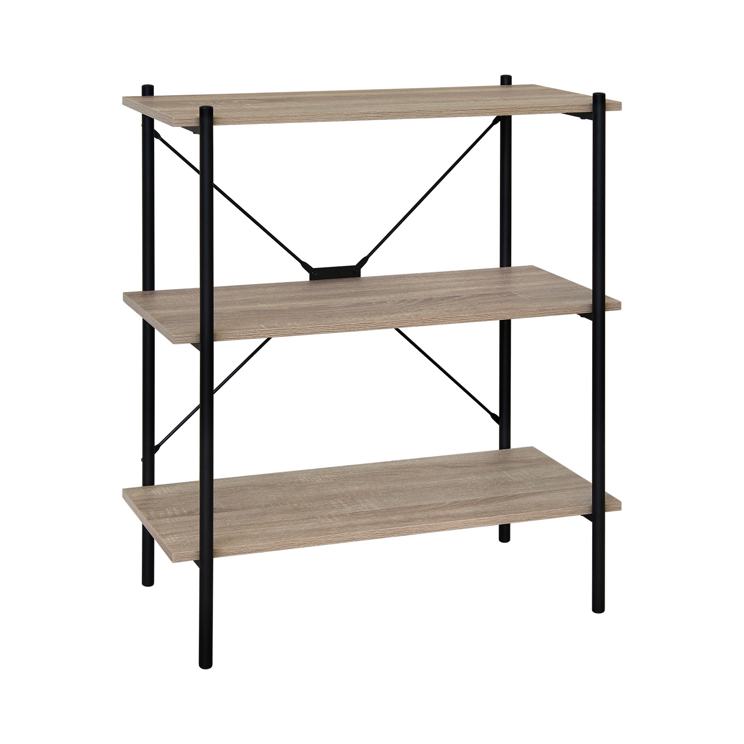 Knihovna v provedení kovová konstrukce černé barvy a 3 police v barevném provedení dub sonoma. Zboží dodáváme v demontu.
