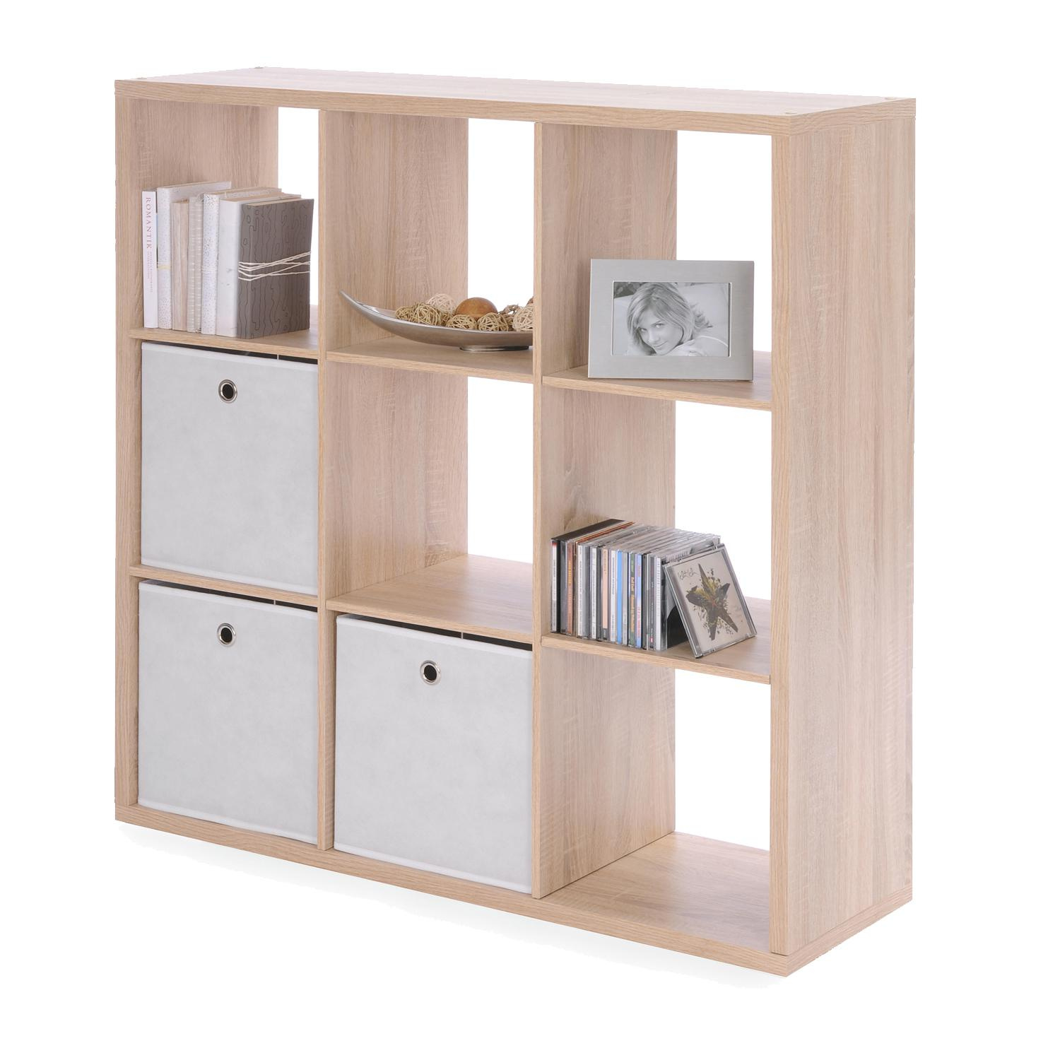 Knihovna Max je vyrobená z laminované dřevotřísky v barevném provedení dub sonoma. Otevřená knihovna je rozdělena na devět stejně velkých částí. Tato moderní knihovna je díky svému provedení vhodná k využití do všech moderních i tradičních interiérů. Knihovnu lze umístiti ve vodorovné i svislé poloze. Zboží je dodáváno v demontu.