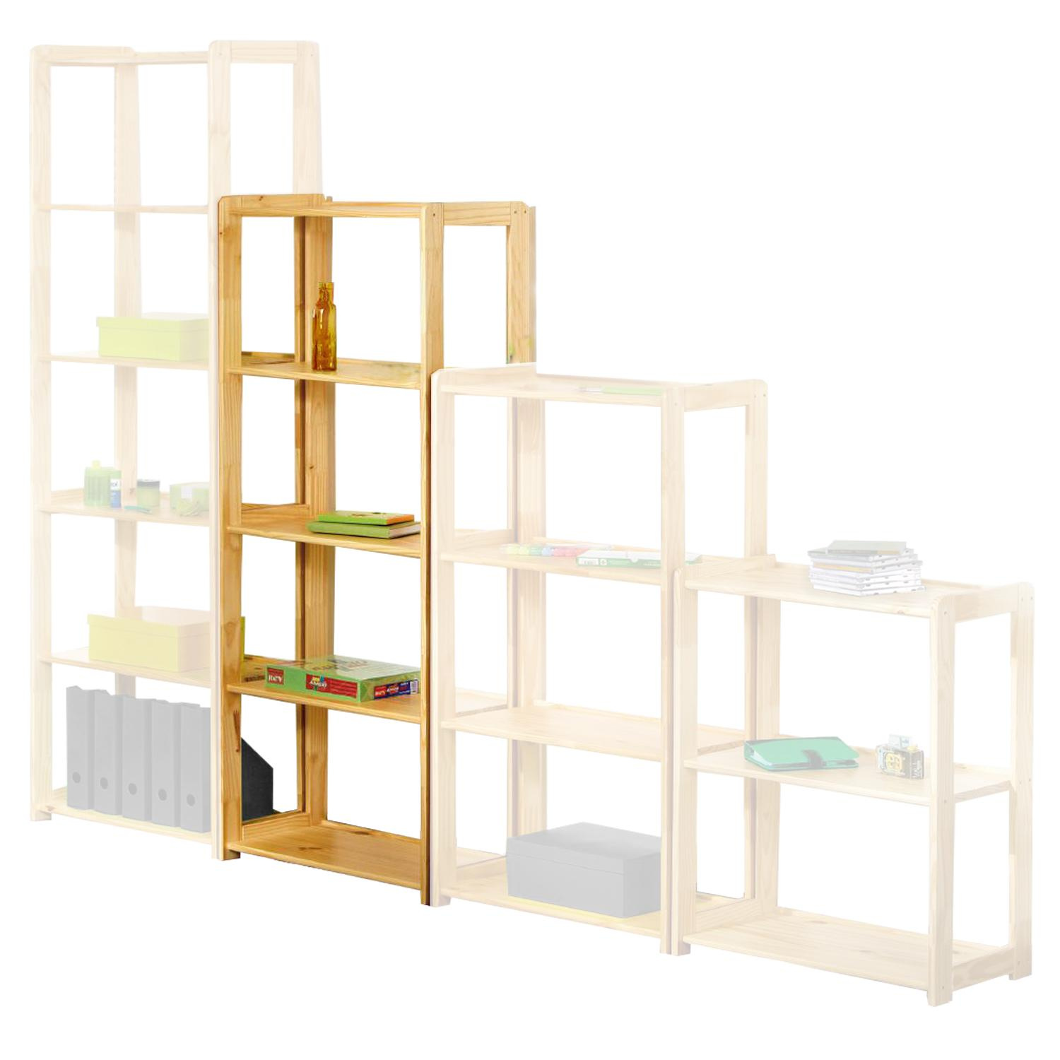 Knihovna je vyrobená z masivního borovicového dřeva lakovaného v přírodní barvě. Otevřená knihovna disponuje 5 policemi. Tato moderní knihovna je díky svému provedení vhodná k využití do všech moderních i tradičních interiérů. Zboží je dodáváno v demontu.