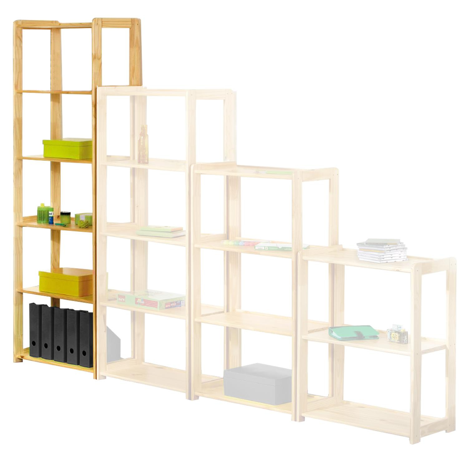 Knihovna je vyrobená z masivního borovicového dřeva lakovaného v přírodní barvě. Otevřená knihovna disponuje 6 policemi. Tato moderní knihovna je díky svému provedení vhodná k využití do všech moderních i tradičních interiérů. Zboží je dodáváno v demontu.