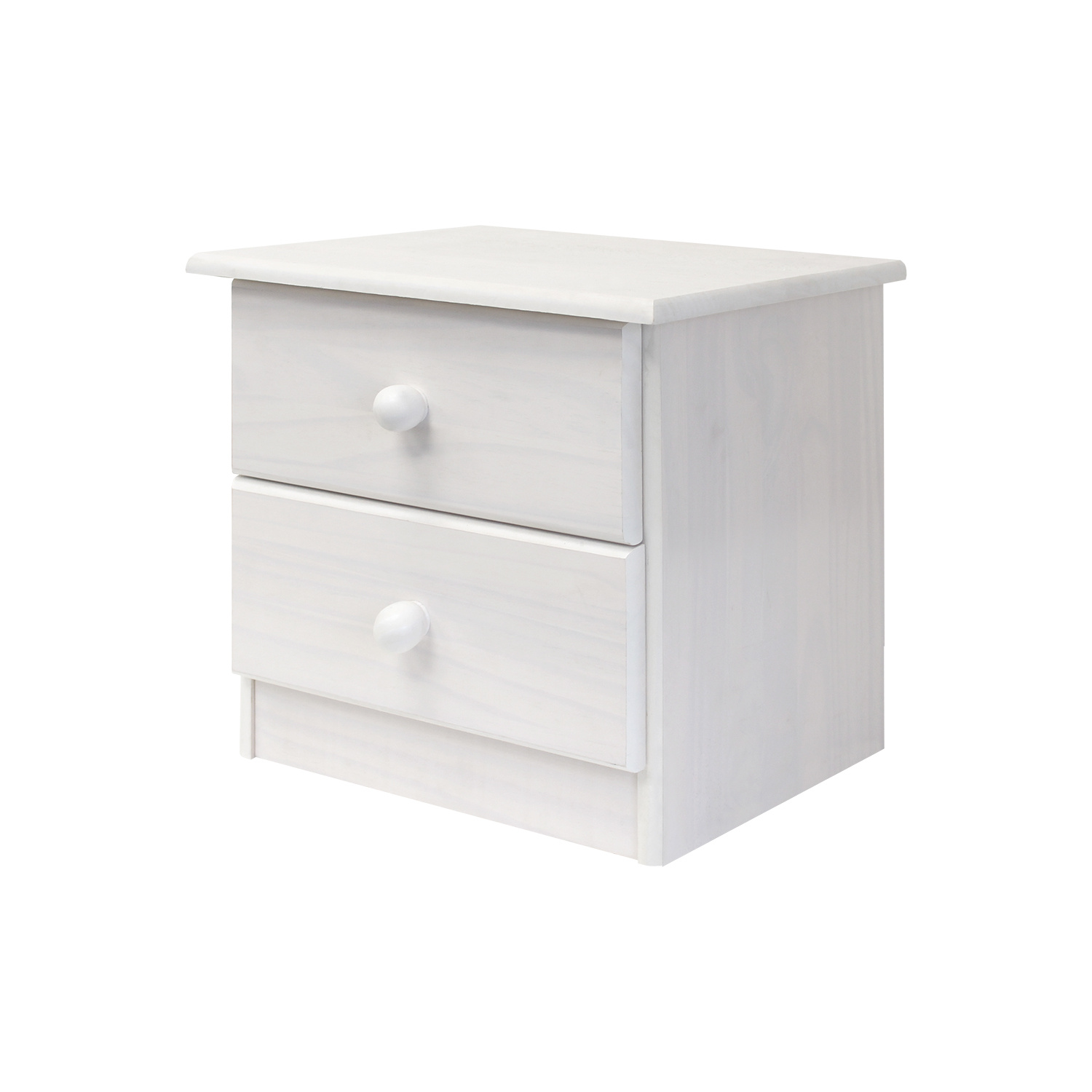 Moderní komoda 1B je vyrobena z masivní borovice, barevné provedení bílý lak. Komoda obsahuje 2 zásuvky s kovovými pojezdy. Hloubka zásuvky 27,5 cm. Komoda je vhodná jak do dětského či studentského pokoje, tak i pro potřeby dospělých v ložnici. Zboží dodáváme v demontu.