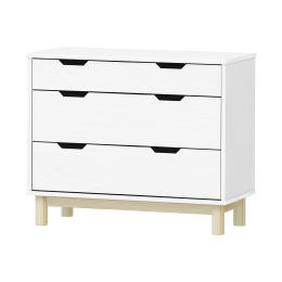 materiál masiv borovice, barevné provedení bílý lak 1 menší a 2 větší zásuvky s kovovými pojezdy