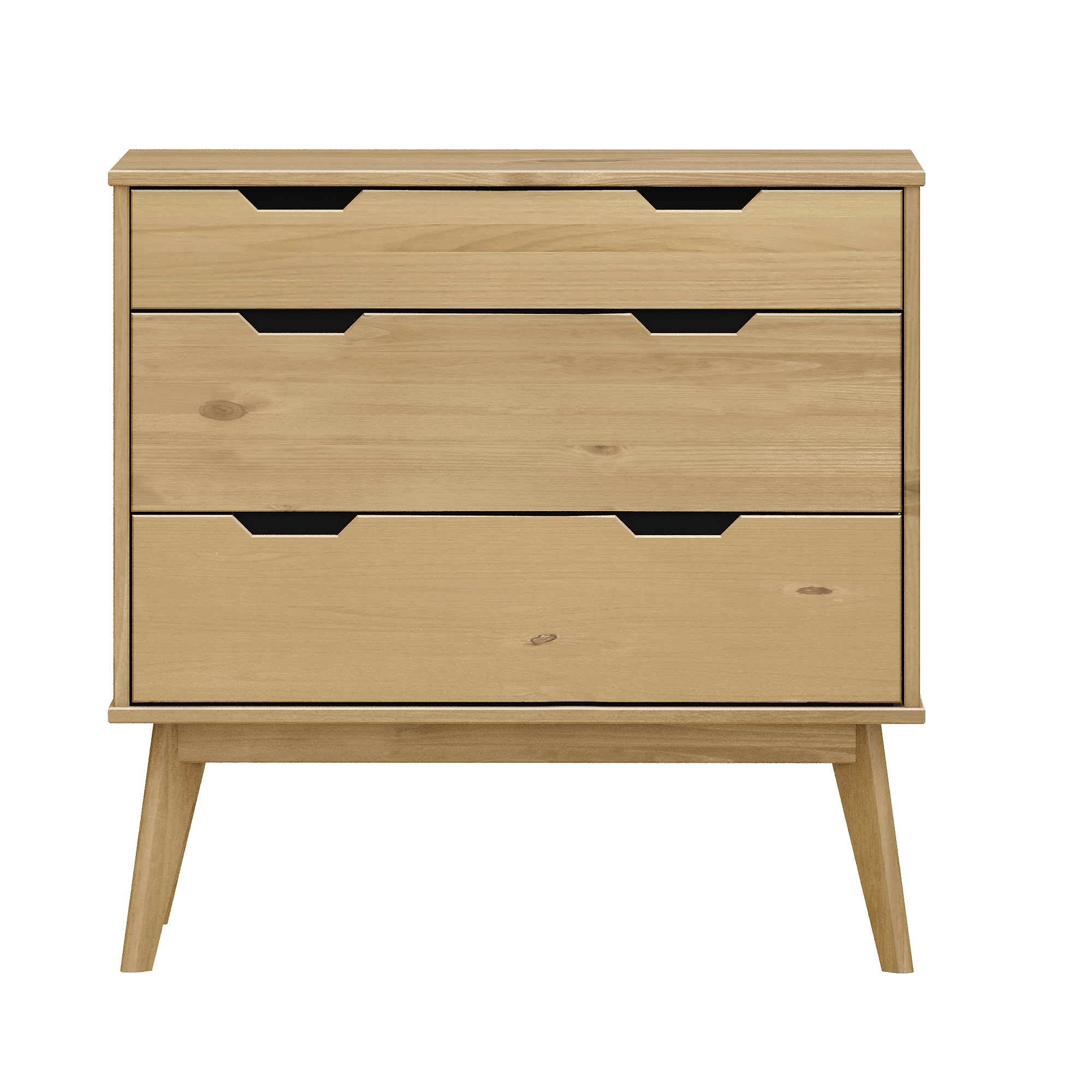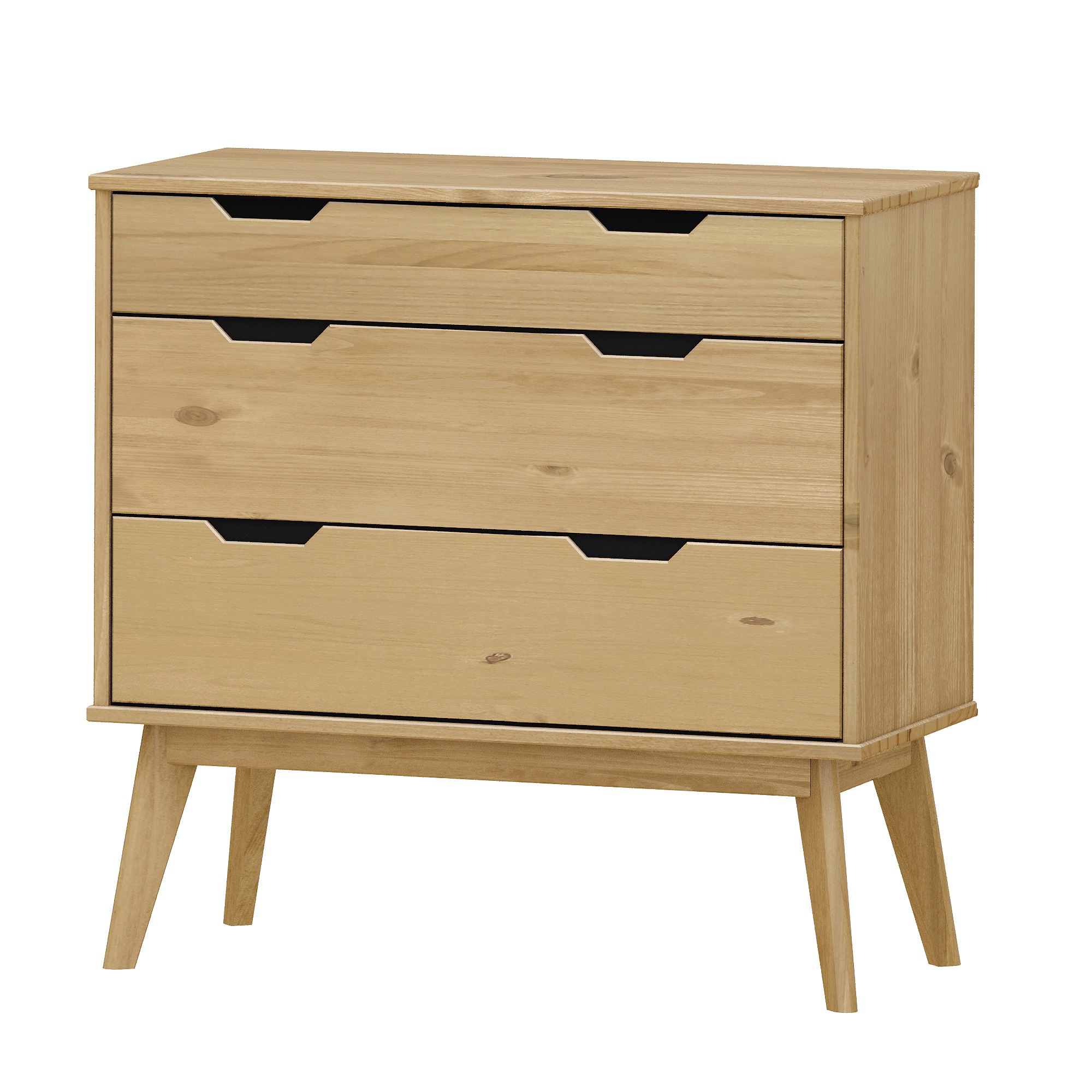 materiál masiv borovice voskovaná v medovém odstínu 1 menší a 2 větší zásuvky s kovovými pojezdy