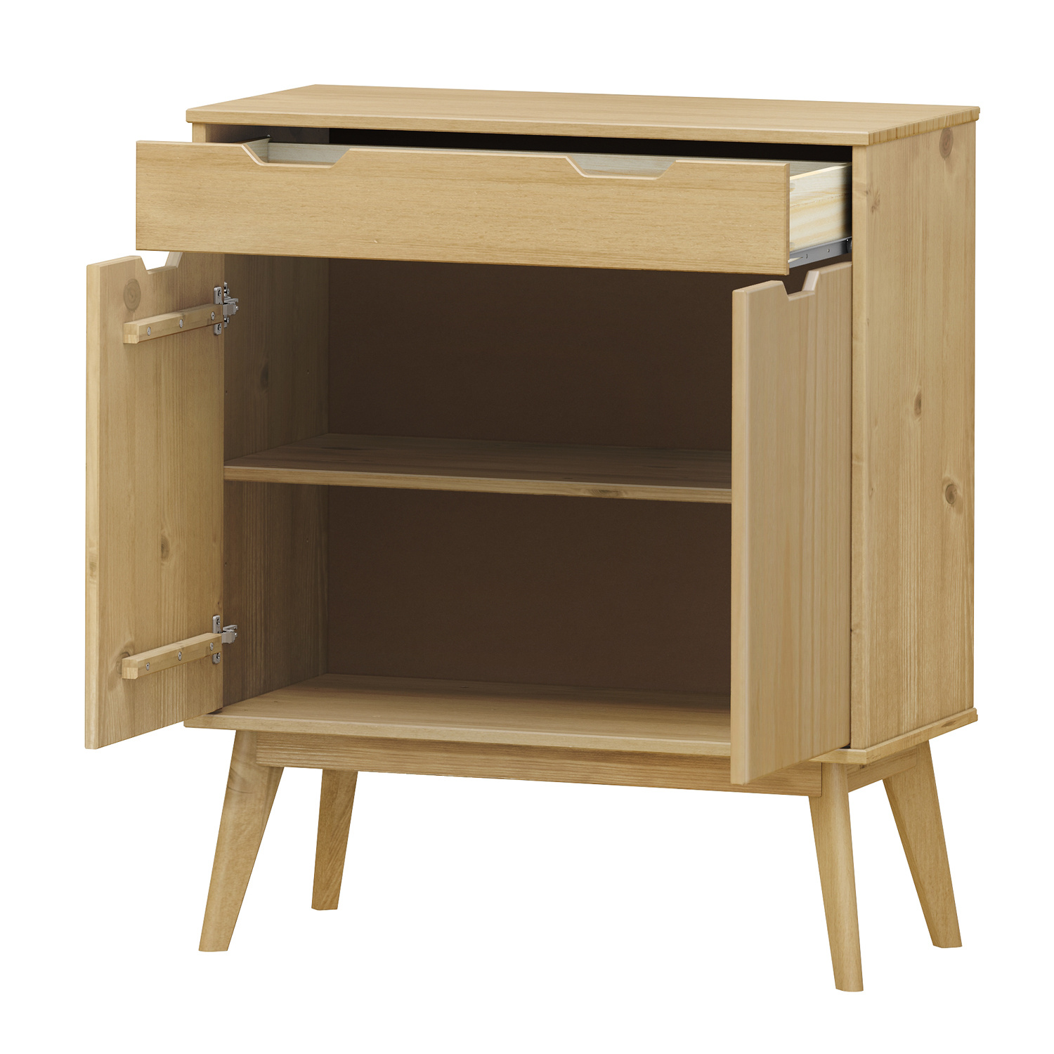 materiál masiv borovice voskovaná v medovém odstínu 1 zásuvka s kovovými pojezdy, 2 dvířka, 1 police