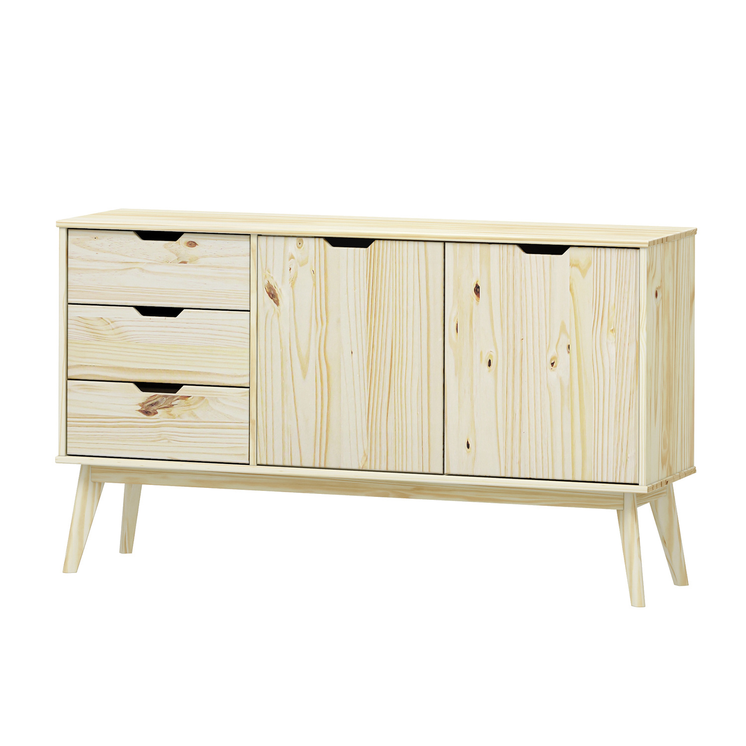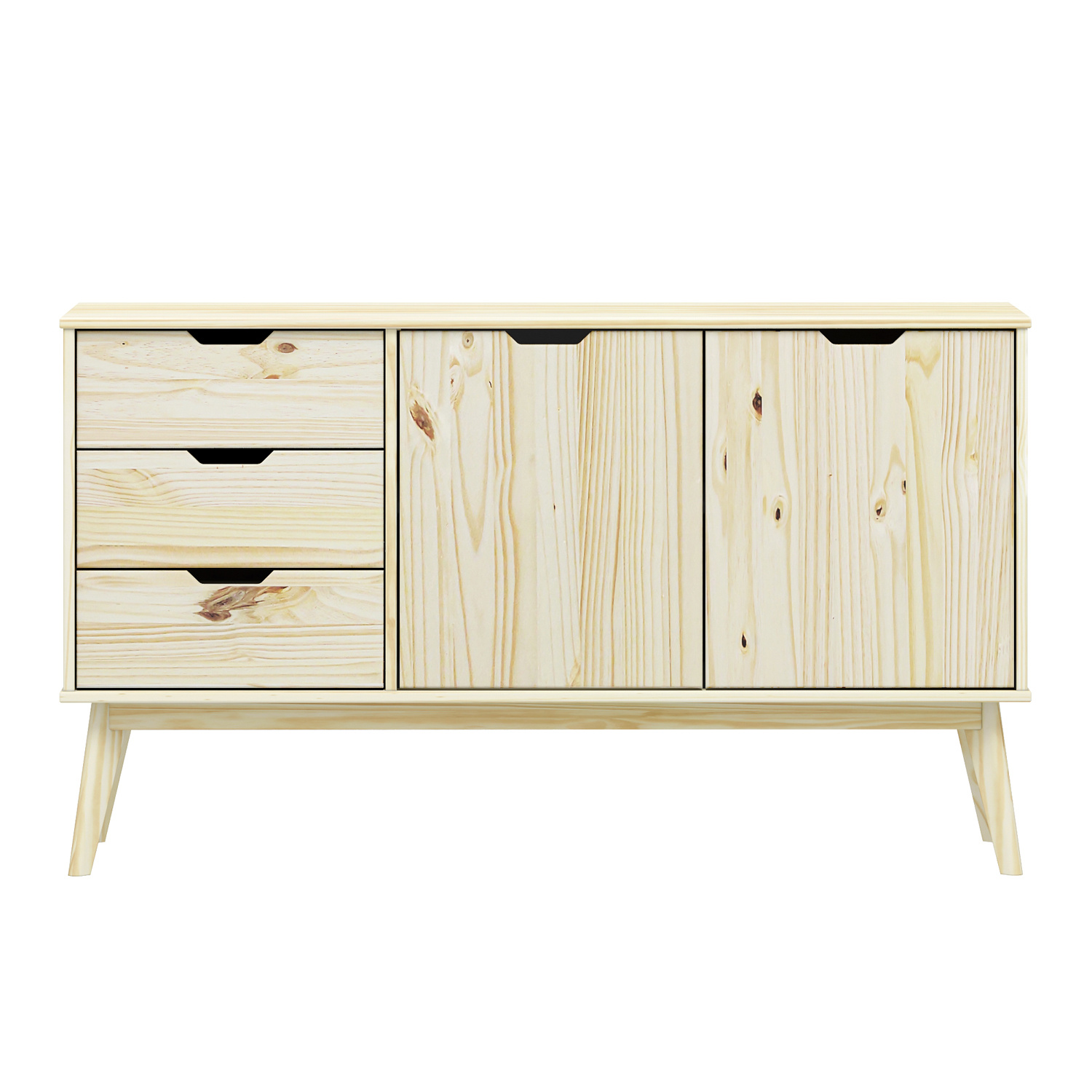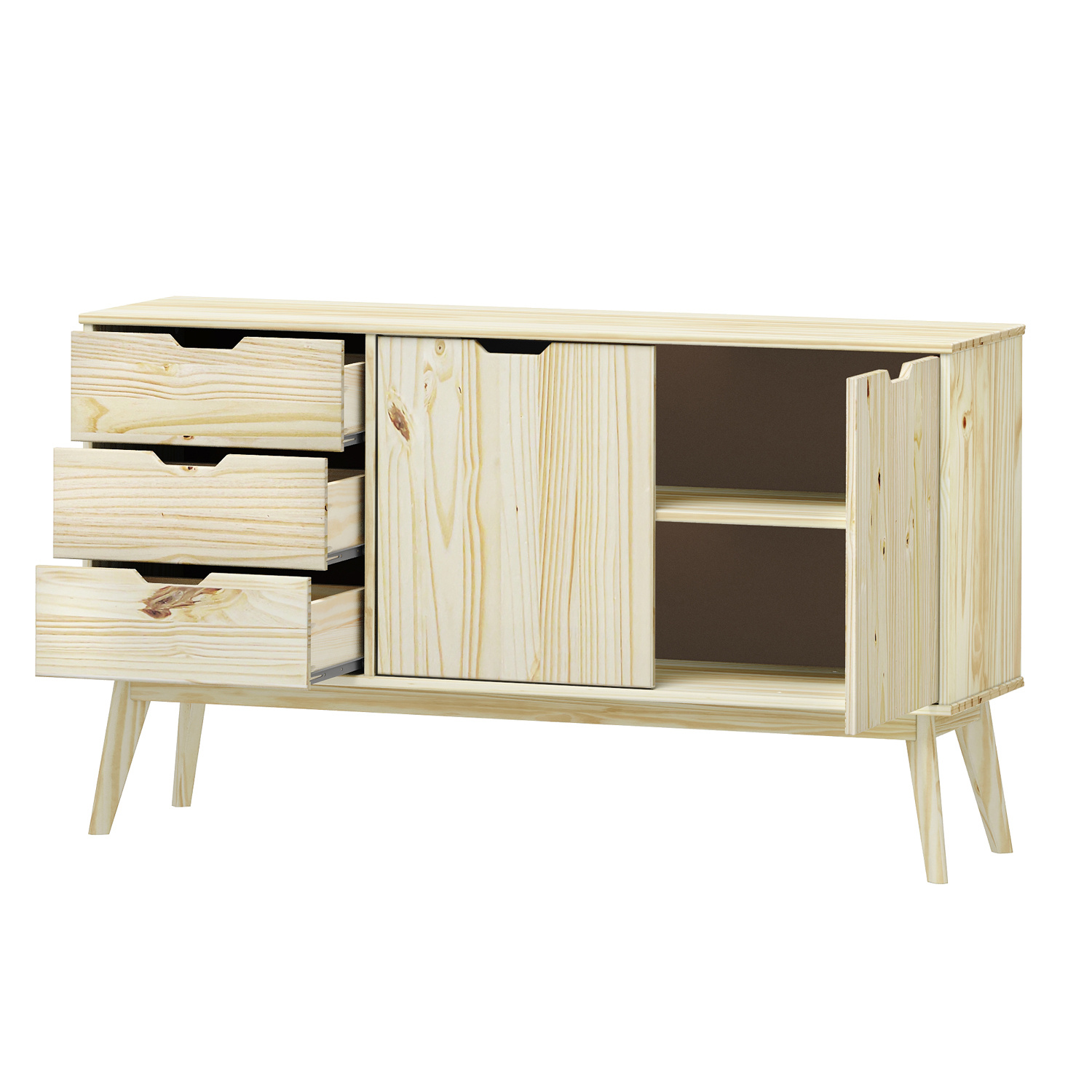 materiál masiv borovice, lakované provedení 3 zásuvky s kovovými pojezdy, 2 dvířka, 1 police