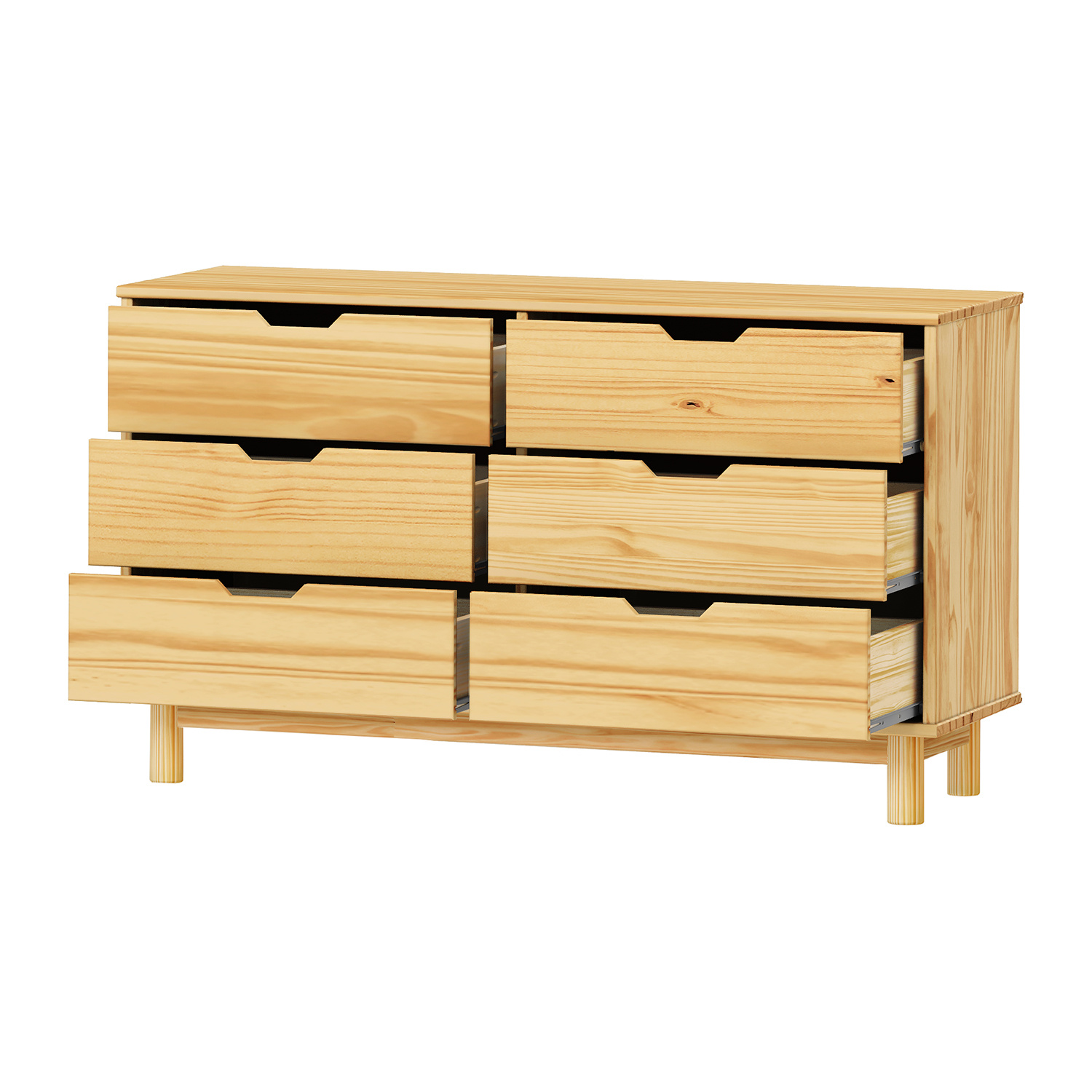 materiál masiv borovice, lakované provedení 6 zásuvek s kovovými pojezdy