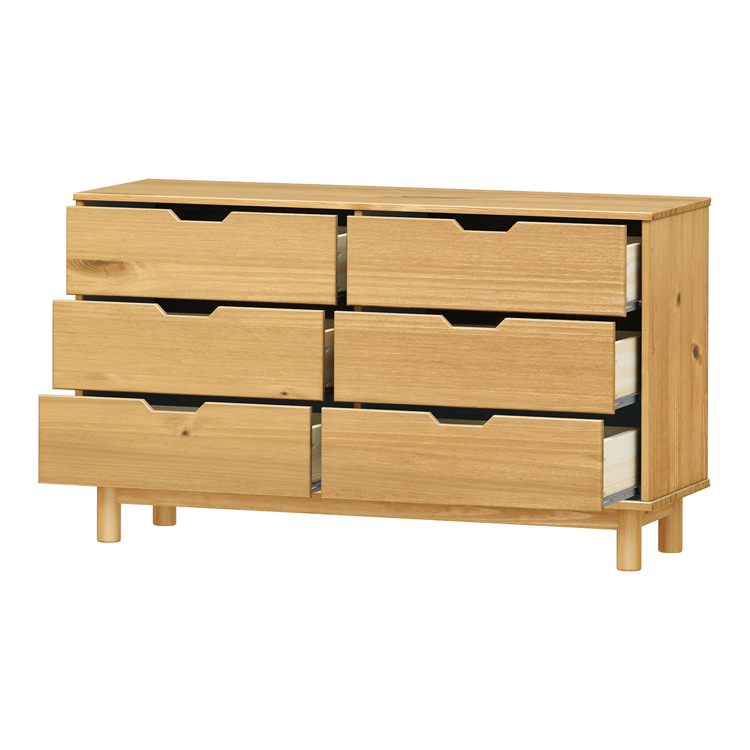 materiál masiv borovice voskovaná v medovém odstínu 6 zásuvek s kovovými pojezdy