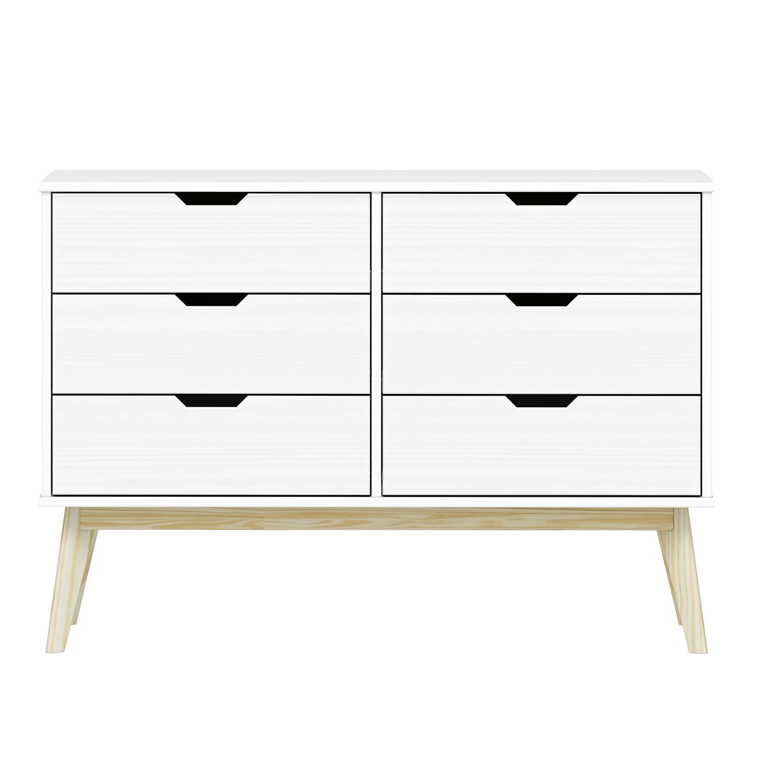 materiál masiv borovice, barevné provedení bílý lak 6 zásuvek s kovovými pojezdy