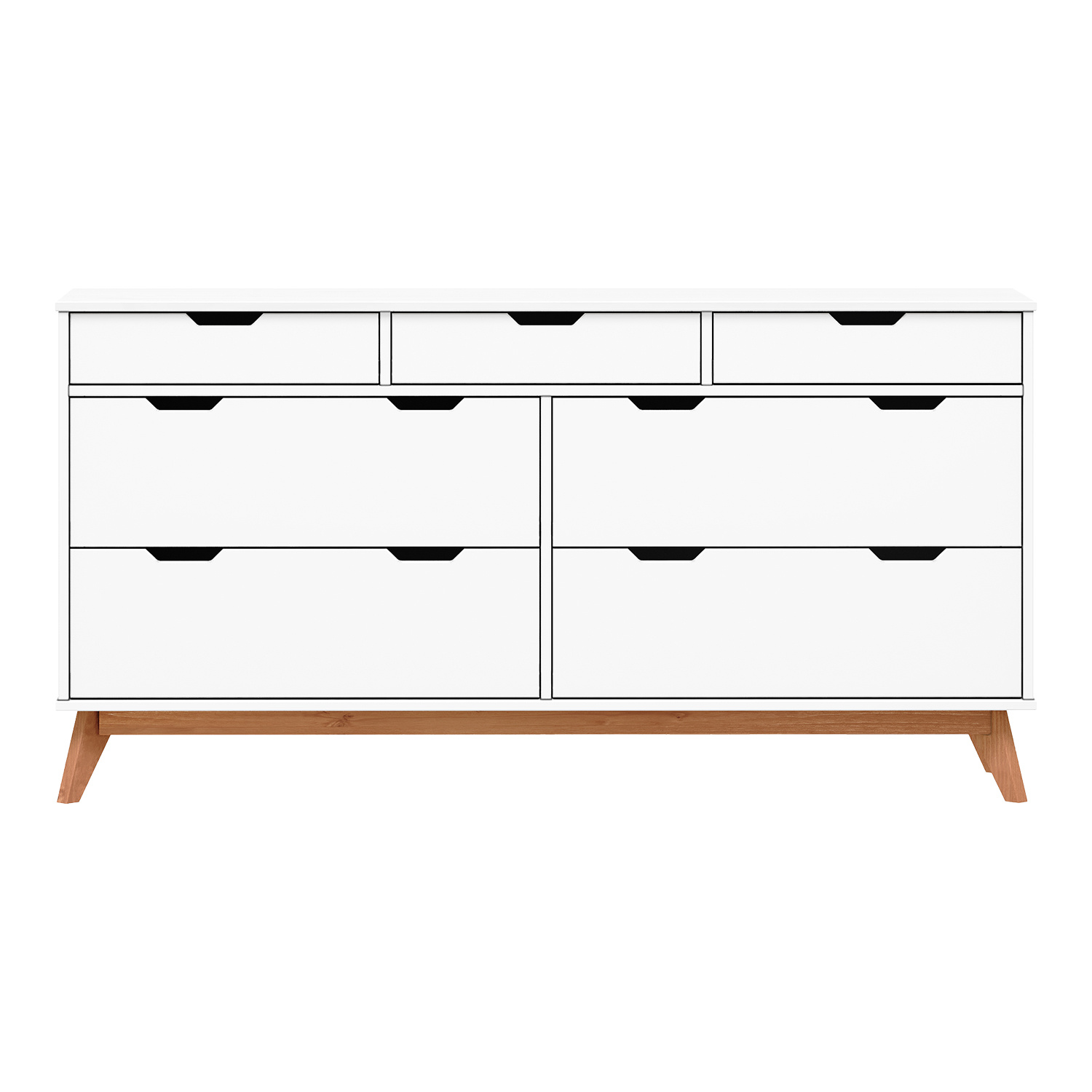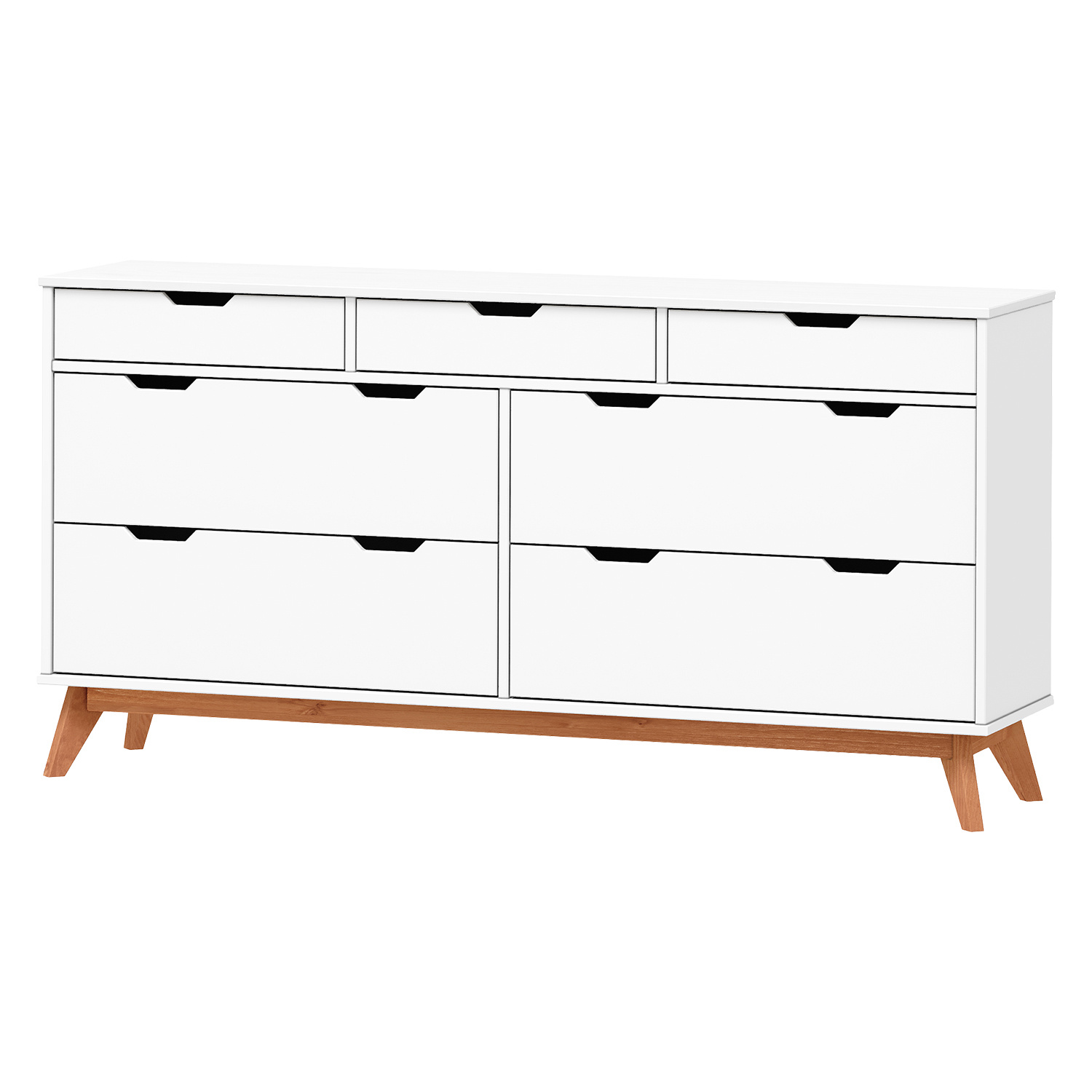 materiál masiv borovice, barevné provedení bílý lak 3 menší a 4 větší zásuvky s kovovými pojezdy