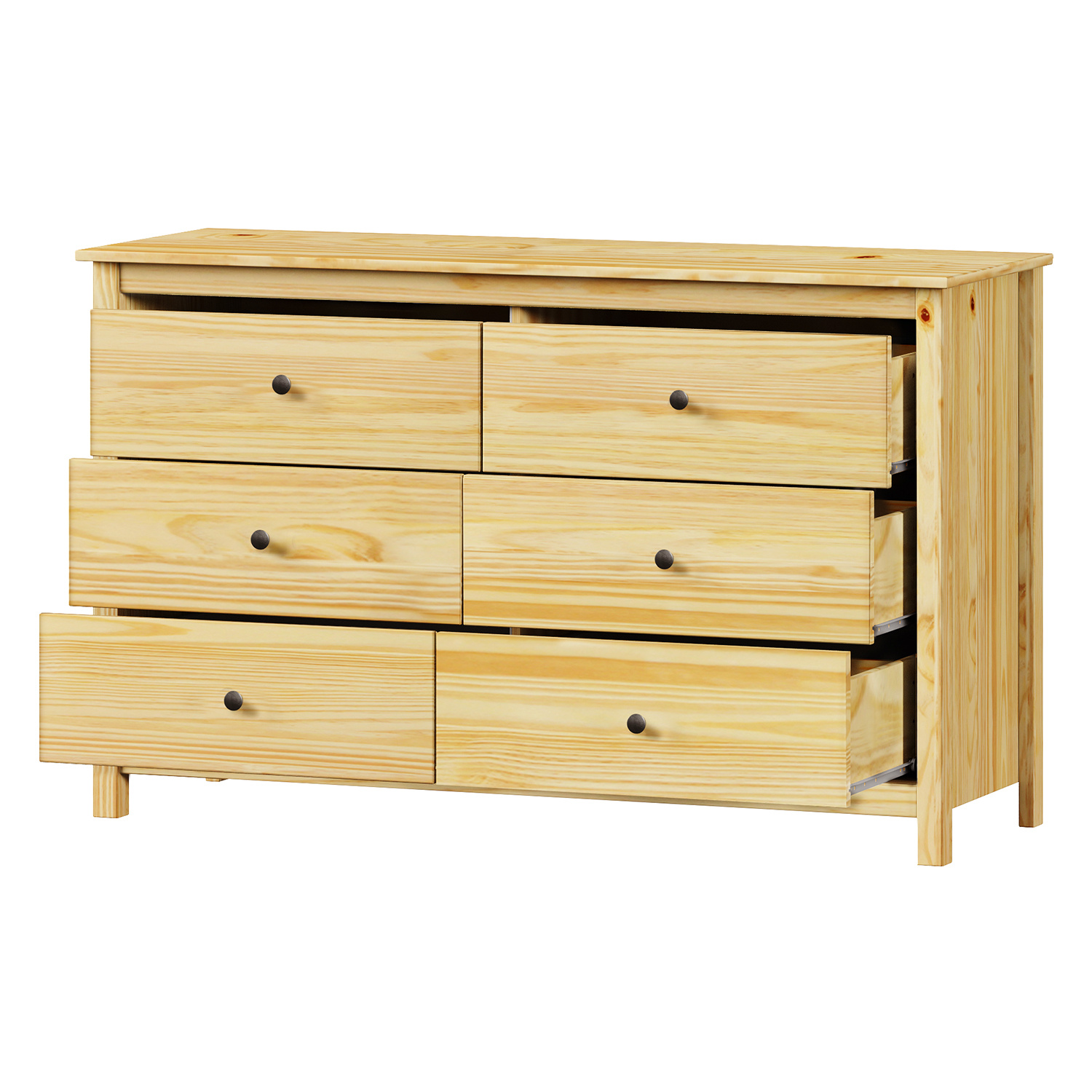 materiál masiv borovice, lakované provedení kovové úchytky šest zásuvek s kovovými pojezdy