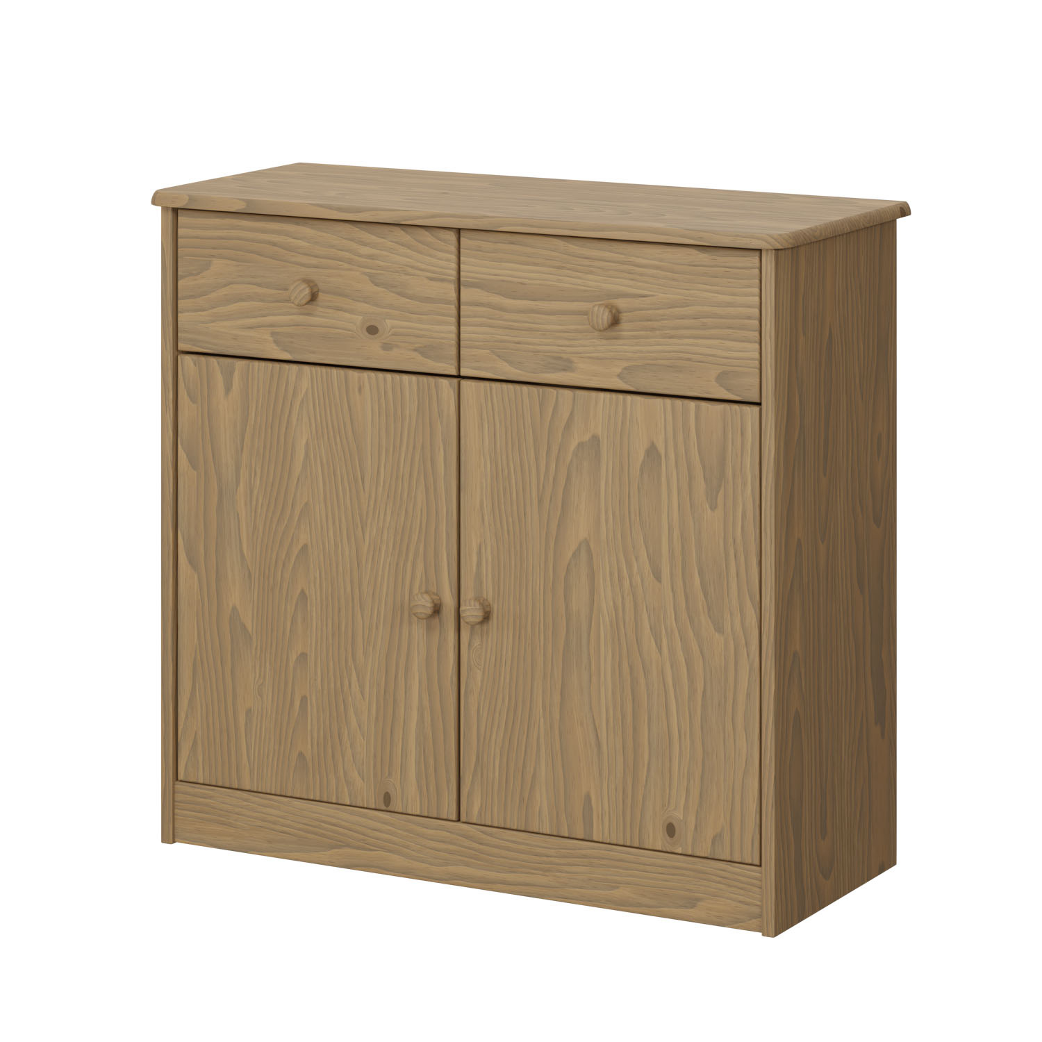 materiál masiv borovice, voskované provedení 2 zásuvky s kovovými pojezdy, skřínka s dvířky a variabilní policí, hloubka zásuvky 27,5 cm