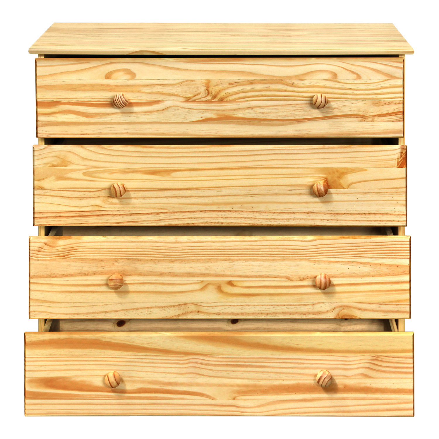 Kvalitní komoda, která je vyrobena ze smrkového lakovaného masivu. Obsahuje 4 zásuvky s kovovými pojezdy. Hloubka zásuvek 36,5 cm. Komoda je povrchově zakončena lakem, který nechá vyniknout přirozenou kresbu dřeva. Zboží dodáváme v demontu.