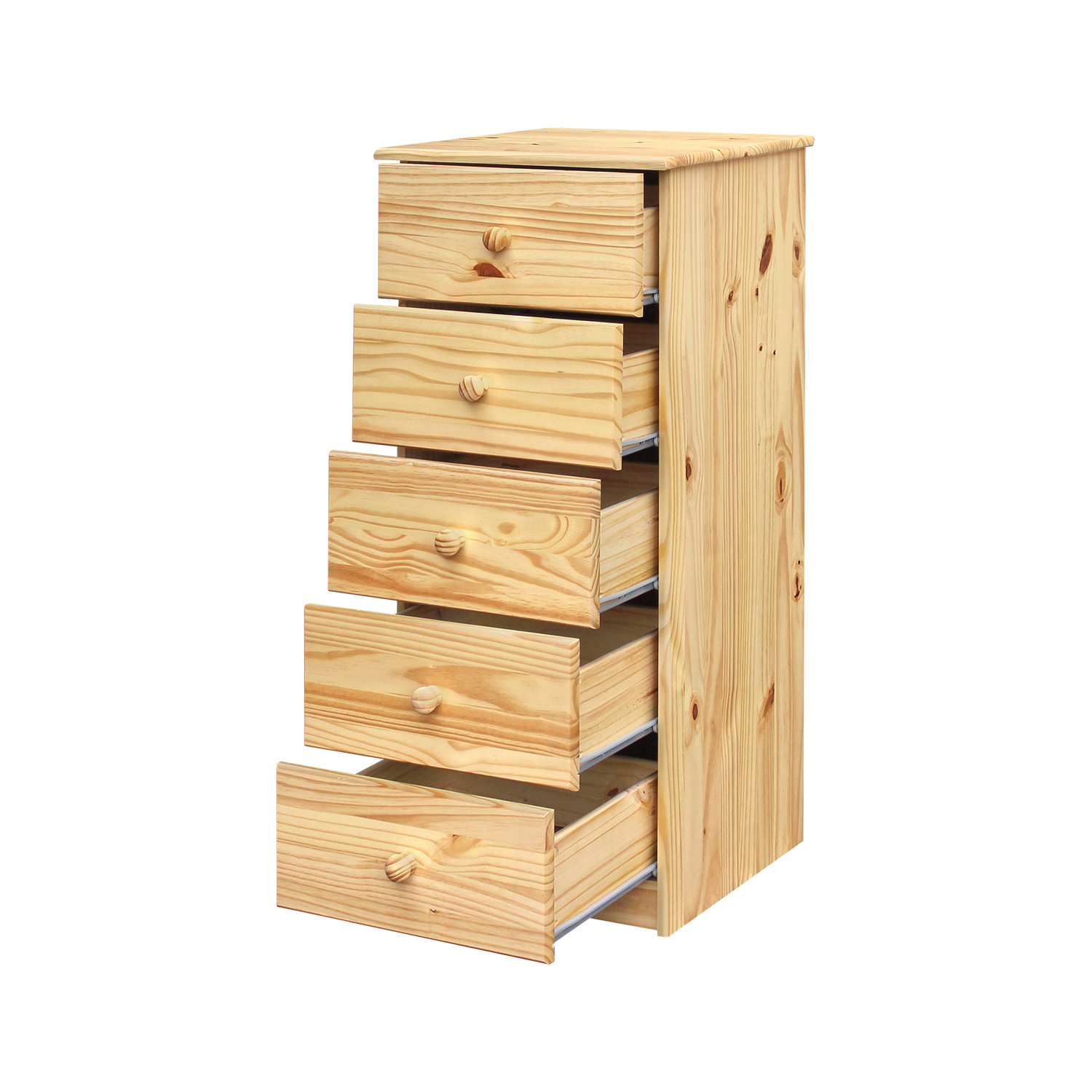 Kvalitní komoda, která je vyrobena z masivní borovice lakovaného masivu. Obsahuje pět zásuvek s kovovými pojezdy. Hloubka zásuvek 36,5 cm. Komoda je povrchově zakončena lakem, který nechá vyniknout přirozenou kresbu dřeva. Zboží dodáváme v demontu.