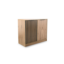Komoda Bali Lux je vyrobena z laminované dřevotřísky s ABS hranami v dekoru dub wotan v kombinaci s černou. Komodu ozvláštňují lamely. Zboží dodáváme v demontu.