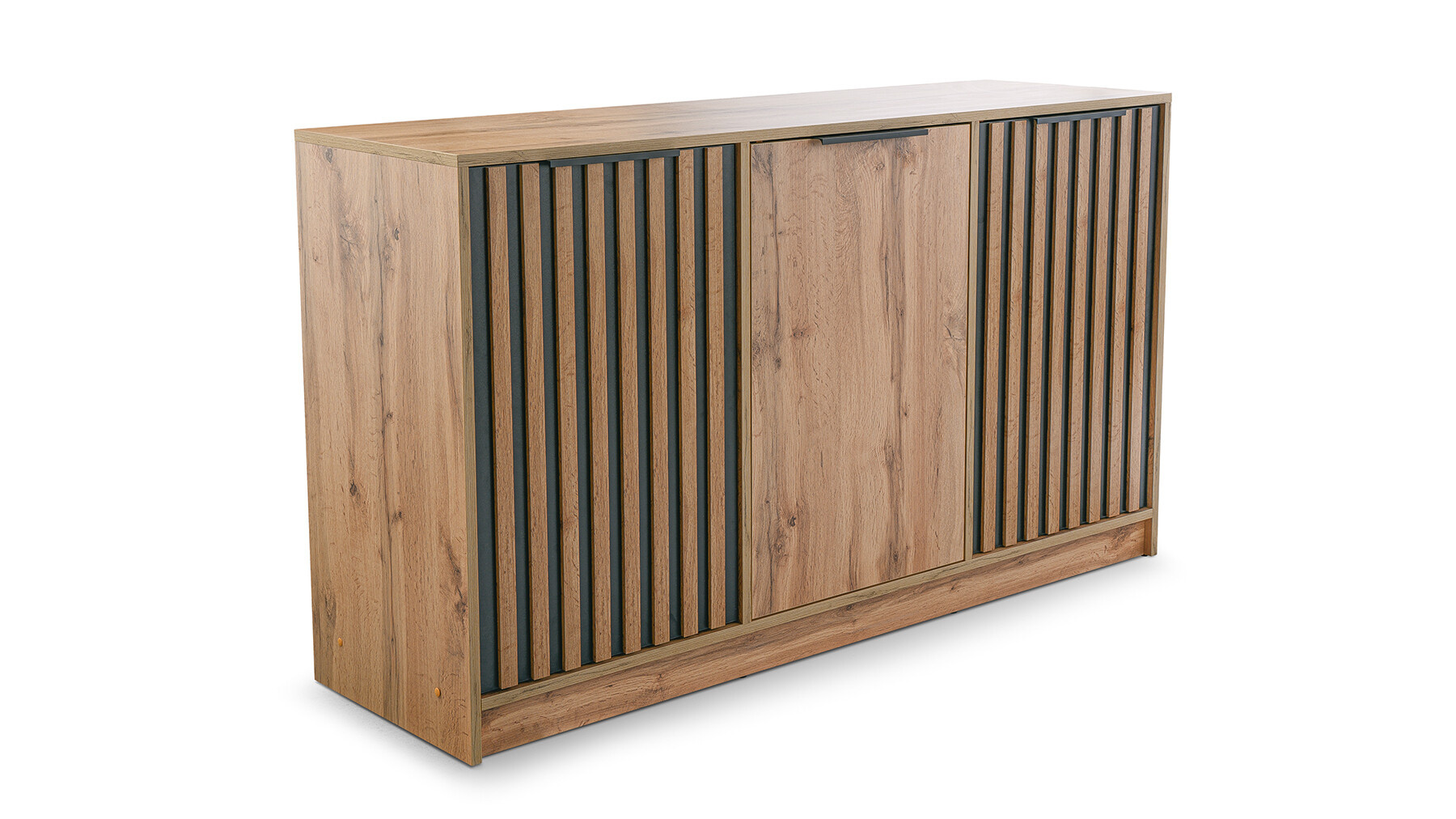 Komoda Bali Lux je vyrobena z laminované dřevotřísky s ABS hranami v dekoru dub wotan v kombinaci s černou. Komodu ozvláštňují lamely. Zboží dodáváme v demontu.