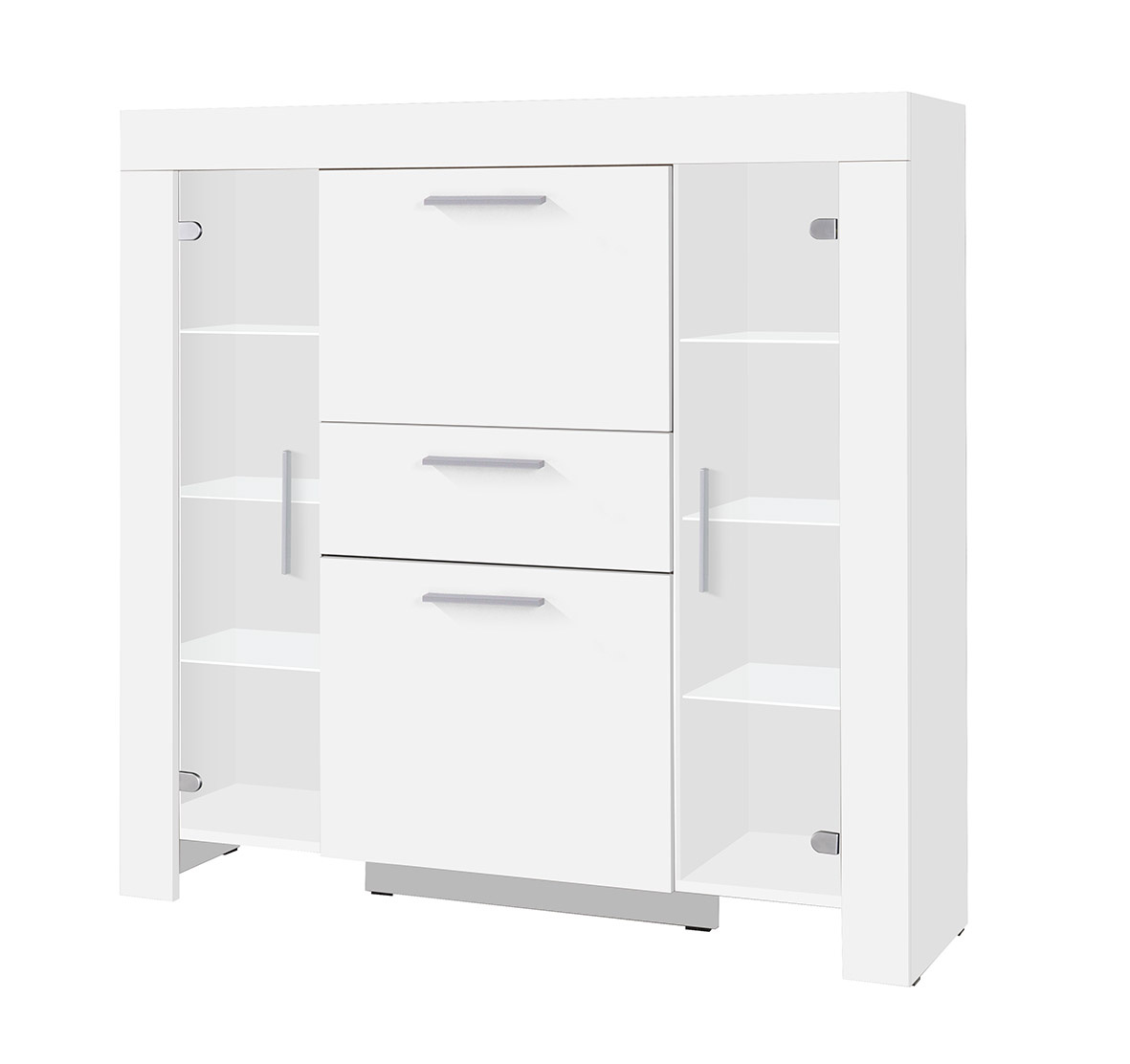 Komoda patří do systému Cezar se kterým si můžete zútulnit svůj obývací pokoj nebo ložnici. Komoda je doplněna o úchytky v barvě chromu. Komoda je v barevném provedení bílá. Zboží je dodáváno v demontu.