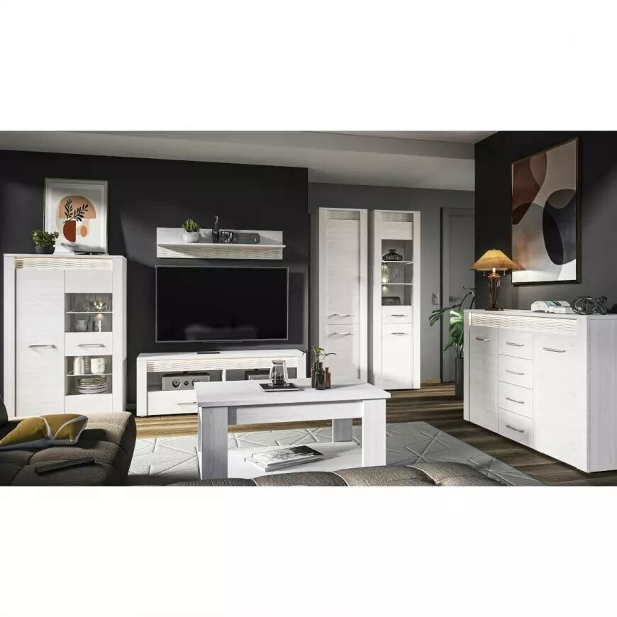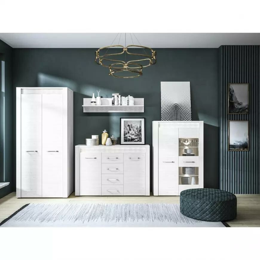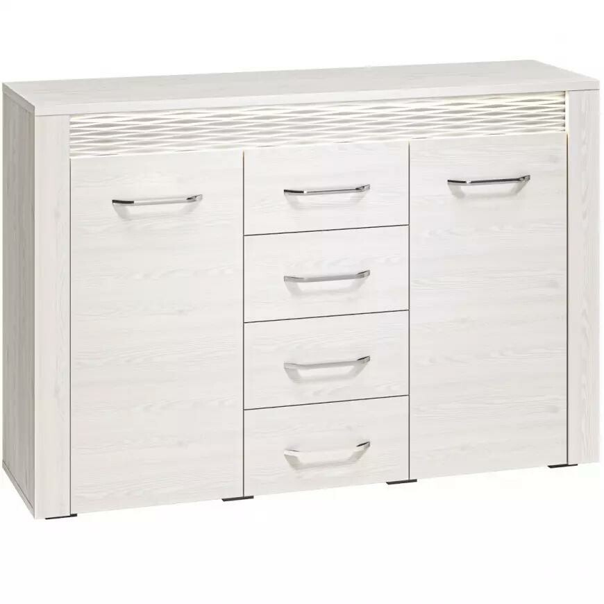 Komoda Clermont je vyrobena z vysoce kvalitní laminované dřevotřískové desky s ABS hranou korpus v  dezénu borovice sněžná. Zboží dodáváme v demontu.