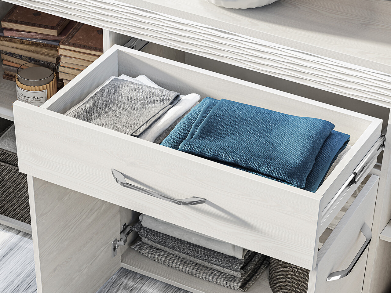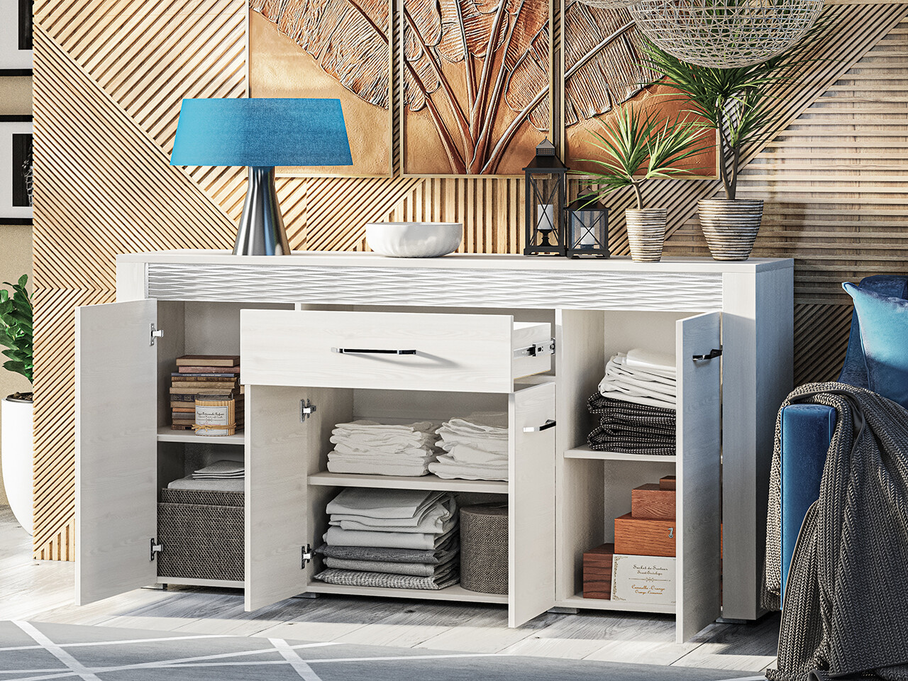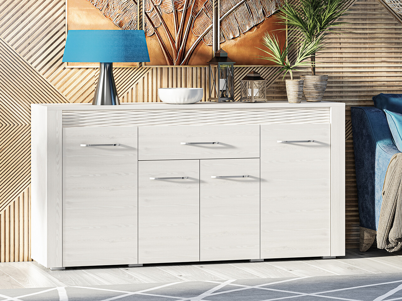 Komoda Clermont je vyrobena z vysoce kvalitní laminované dřevotřískové desky s ABS hranou korpus v  dezénu borovice sněžná. Zboží dodáváme v demontu.