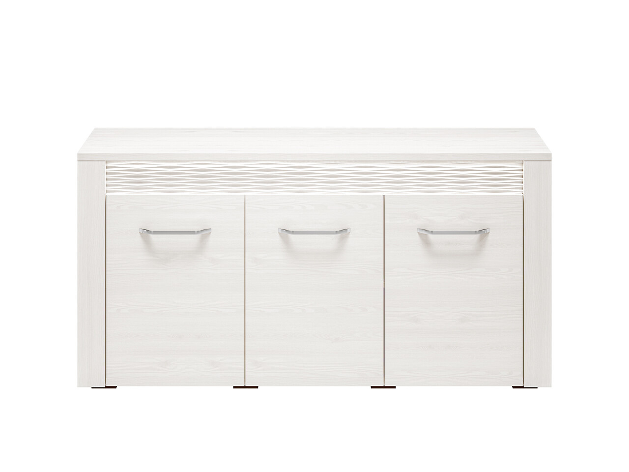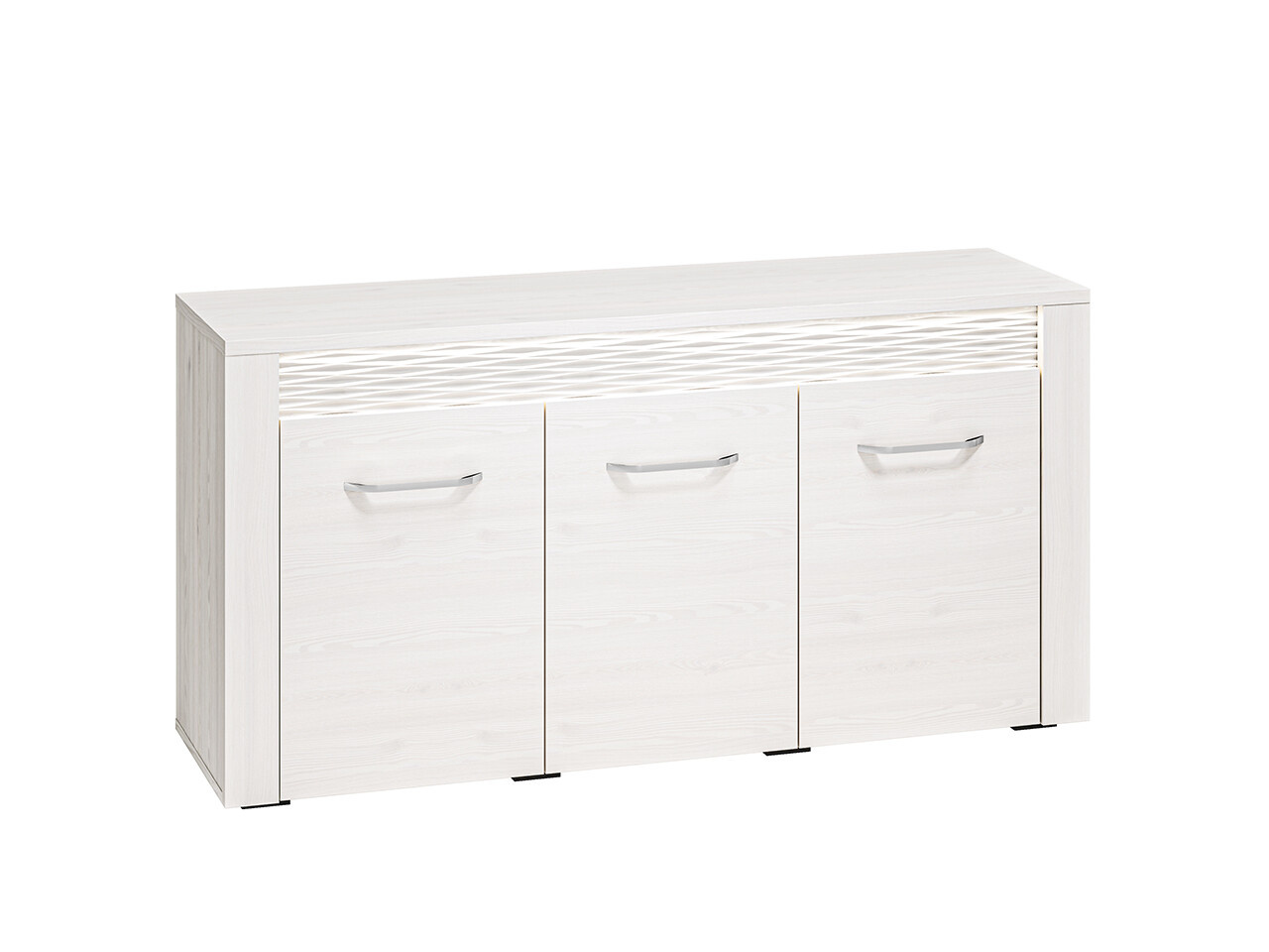 Komoda Clermont je vyrobena z vysoce kvalitní laminované dřevotřískové desky s ABS hranou korpus v  dezénu borovice sněžná. Zboží dodáváme v demontu.