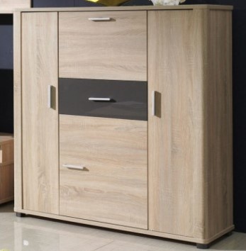 Komoda FILL 3 dub sonoma/grafit leskKomoda FILL 3 dub sonoma/grafit lesk