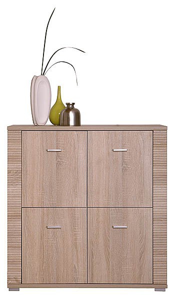 Moderní komoda je vyrobena z kvalitního lamina. Má čtvery dvířka a nožky jsou vyrobené z odolného plastu. Korpus i dvířka celé kolekce jsou v dezénu dub sonoma. Dekorační lišty na nábytku jsou MDF. Díky eleganci a funkčnosti jednotlivých dílů je vybavení obývacího pokoje nebo pracovny velmi snadnou záležitostí. Nábytek z kolekce GRESS je navržen tak, aby i jednotlivě vkusně doplnil výbavu pokojů. Společně pak tvoří elegantní řešení výbavy vašeho bytu. Zboží dodáváme v demontu.