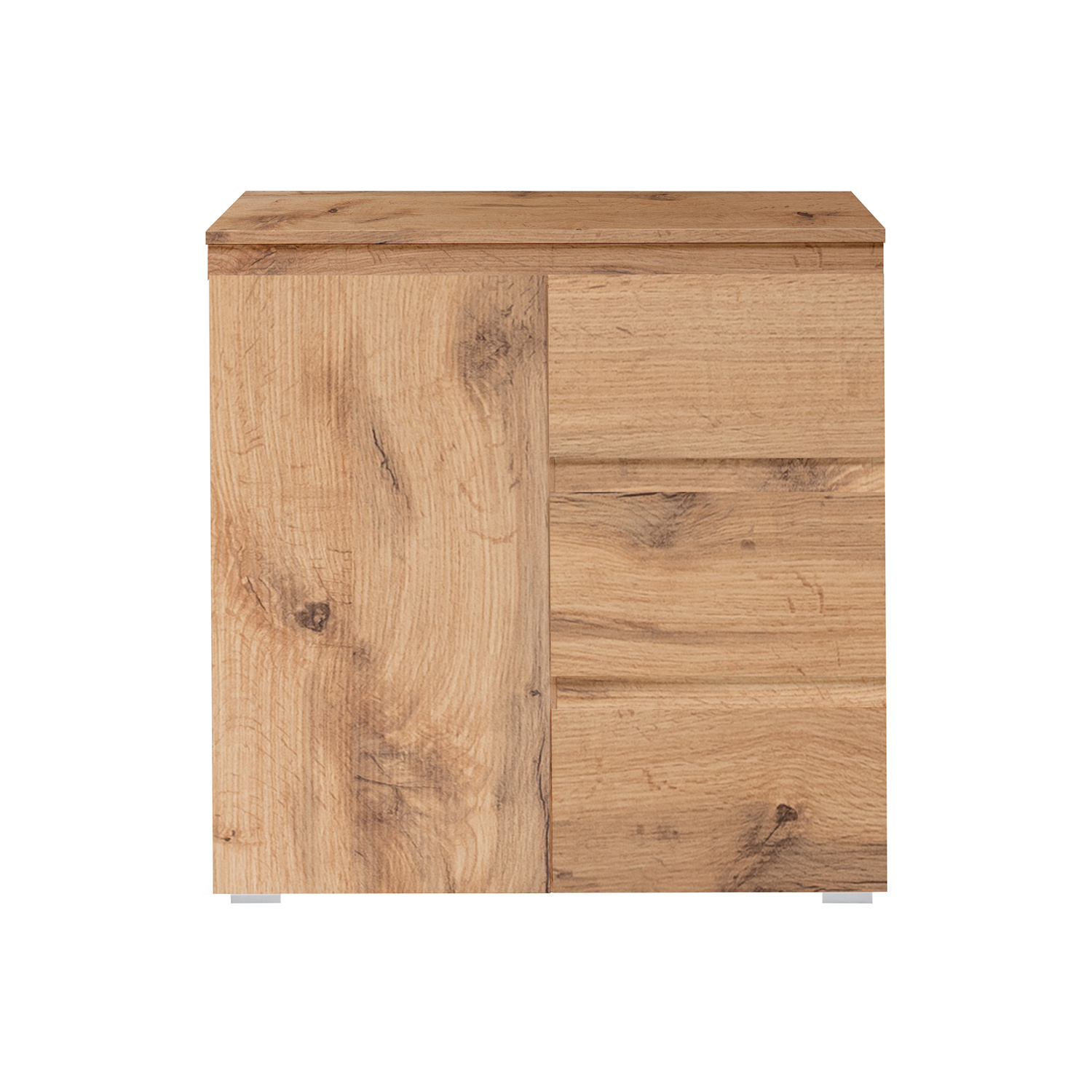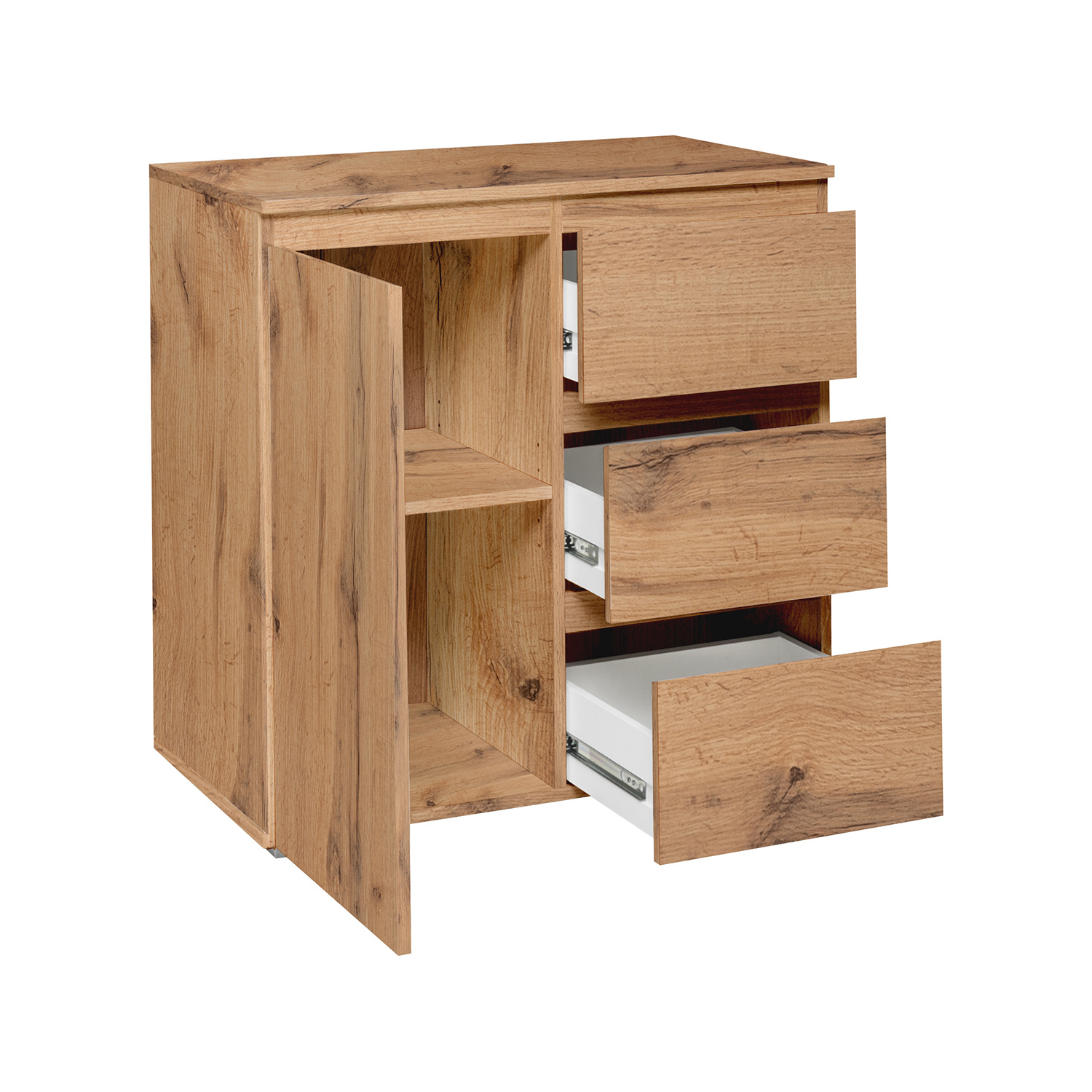 Moderní komoda Image je vyrobena z lamina v barevném provedení zlatý dub. Komoda má  1 dveře, 1 police a 3 zásuvky s kovovými pojezdy. Praktická komoda Image je skvělou volbou do každého obývacího pokoje nebo ložnice. Zboží dodáváme v demontu.