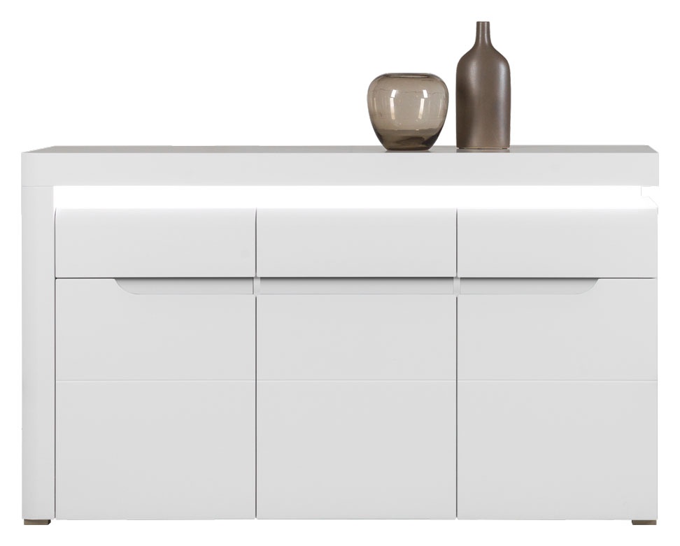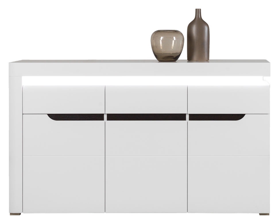 Moderní komoda je vyrobena z lamina MDF. Zákazník si může vybrat lištu bílou nebo lištu wenge. Korpus je v dezenu bílá a dvířka bílá vysoký lesk. Nohy jsou plastové s možností regulace. Osvětlení LED ve standardu. System IRMA vyniká svým jedinečným elegantním designem a je vhodná jak do obývacího pokoje, tak i do ložnice. Zboží dodáváme v demontu.