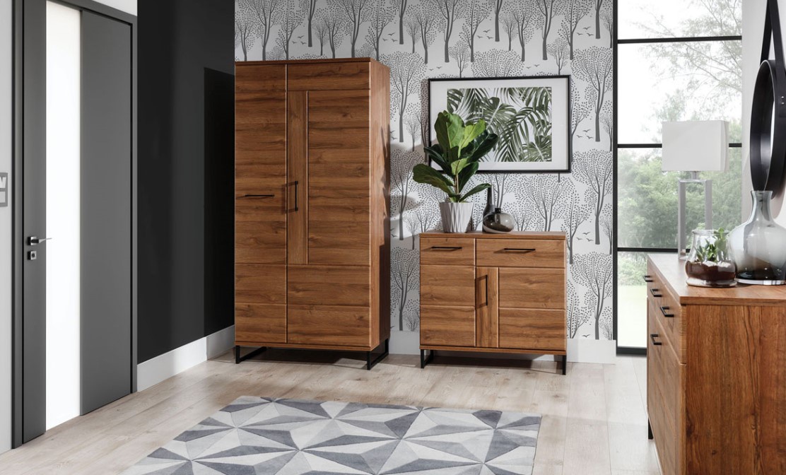 Komoda Ivo IV4 je vyrobena v dezénu dub april. Korpus má sílu lamina 16mm, vrchní desky 22mm a hrany chrání ABS 0,5mm a 1,5mm. Dvířka se systémem tichého dovírání a zásuvky jsou z MDF o síle 18mm potažené folií (PVC). Nožky a úchytky jsou kovové. ULED osvětlení je součástí. Zboží dodáváme v demontu.