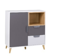 Moderní komoda JOKER 9 je vyrobena z kvalitního lamina DTD o síle 16 mm, hrany jsou začištěny ABS hranou, pojezdy jsou kovové. Komoda má matnou povrchovou úpravu v barevném provedení bílá/šedá/dub lefkas. Sektorový nábytek JOKER tvoří 15 prvků, které můžete libovolně kombinovat. Díky čemu si můžete sestavit pokoj podle svých představ. Zboží dodáváme v demontu.