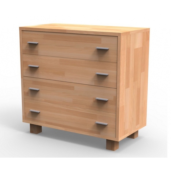 Moderní komoda je vyrobena z masivu v barevném provedení buk cink(parketový desing) o tloušťce 27 mm. Má 4 velké zásuvky a stojí na nožičkách. Za příplatek 25% je možné vyrobit bez parketového vzoru. Zboží dodáváme v demontu.