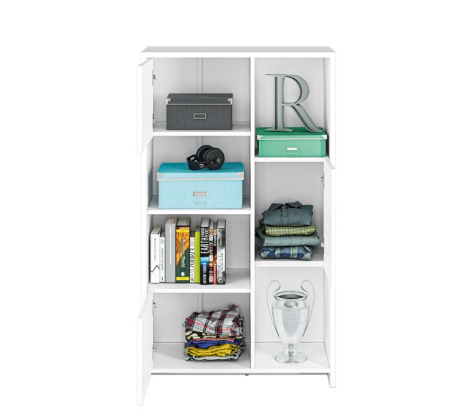 KENDO je sada sedmi praktických a univerzálních kusů nábytku do obývacího pokoje, teenagerova pokoje, ložnice nebo domácí kanceláře. Tato univerzální a minimalistická kolekce se hodí do každého moderního interiéru. Bílý nábytek rozjasní a opticky zvětší prostor. Kolekce je vyrobena z lamina nejvyšší kvality odolného proti poškrábání, vlhkosti a vysokým teplotám. Jsou použity hrany ABS, které jsou trvanlivé, odolné proti nárazu, vlhkosti a neodlepují se. Zboží je dodáváno v demontu.