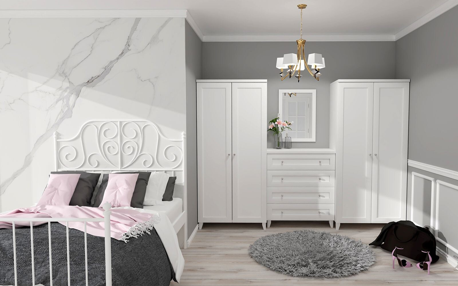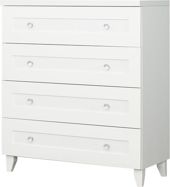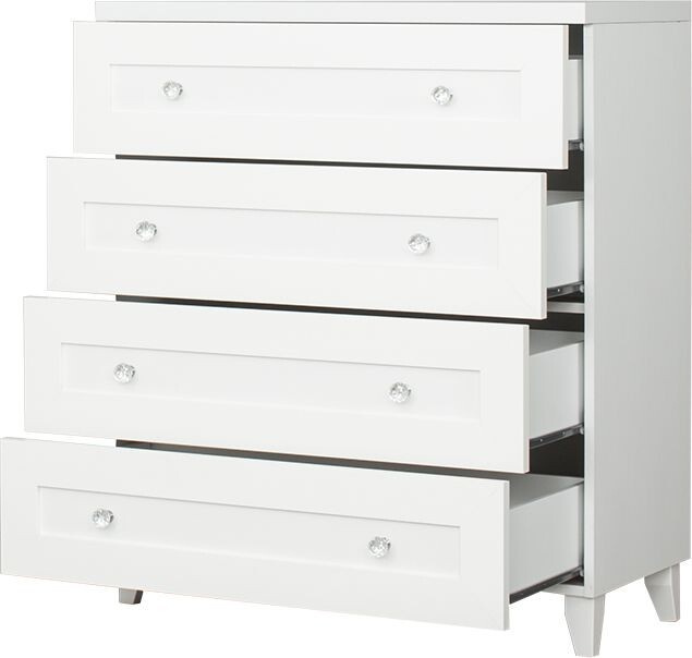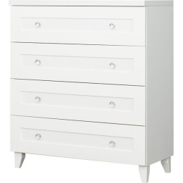Komoda se 4 zásuvkami v bílé barvě. Zboží je dodáváno v demontu.