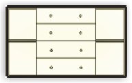 Komoda je vyrobená z borovicového masivu, který je ošetřen dvěma vrstvami bezbarvého ekologického laku. Tyto solitéry jsou celomasivní, tzn. všechny části jsou vyrobeny z přírodního masivu, včetně bočnic a korpusů šuplíků. Dna šuplíků a záda jsou vyrobeny z bílého sololitu tl.0,5 mm. Komoda se dodává ve složeném stavu.