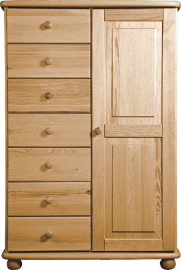 Komoda je vyrobená z borovicového masivu, který je ošetřen dvěma vrstvami bezbarvého ekologického laku. Tyto solitéry jsou celomasivní, tzn. všechny části jsou vyrobeny z přírodního masivu, včetně bočnic a korpusů šuplíků. Dna šuplíků a záda jsou vyrobeny z bílého sololitu tl.0,5 mm. Komoda se dodává ve složeném stavu.