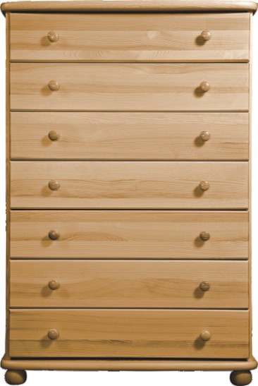 Komoda je vyrobená z borovicového masivu, které je ošetřeno dvěma vrstvami bezbarvého ekologického laku. Tyto solitéry jsou celomasivní, tzn. všechny části jsou vyrobeny z přírodního masivu, včetně bočnic a korpusů šuplíků. Dna šuplíků a záda jsou vyrobeny z bílého sololitu tl.0,5 mm. Komoda se dodává ve složeném stavu.