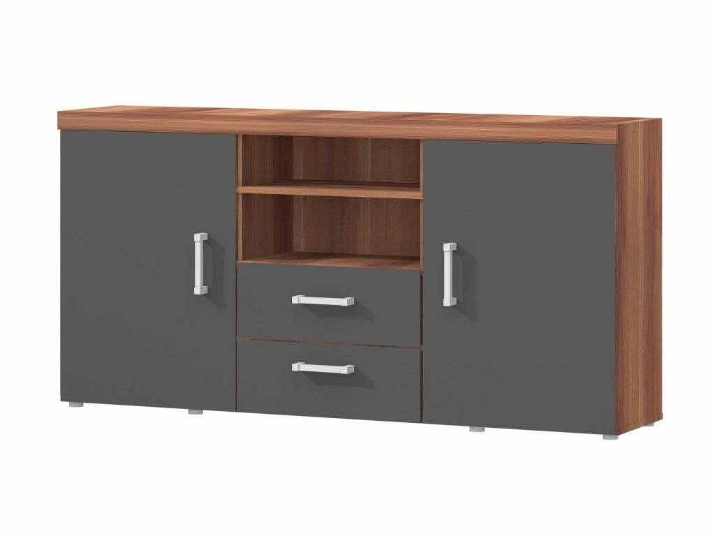 Komoda ze systému Samba je vyrobená z kvalitního lamina tl. 16 mm, hrany olepené fólií v barevném provedení švestka/ grafit. Komoda má 2x dvířka, uvnitř vždy 1x police, 2x zásuvku a 2x otevřenou polici. Zboží dodáváme v demontu.