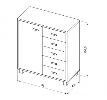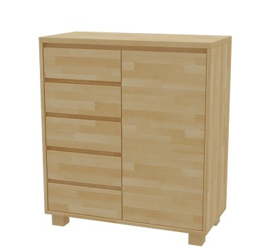 Komoda SK D 5Z je vyrobena z masivního bukového dřeva v provedení buk. Tloušťka masivu 3/2 cm u masivního buku a 4/2 u jádrového buku. Povrchová úprava - lak u masivního buku nebo olejovosk u jádrového buku. Skříňka se dodává v 1 policí. Zboží dodáváme v demontu.