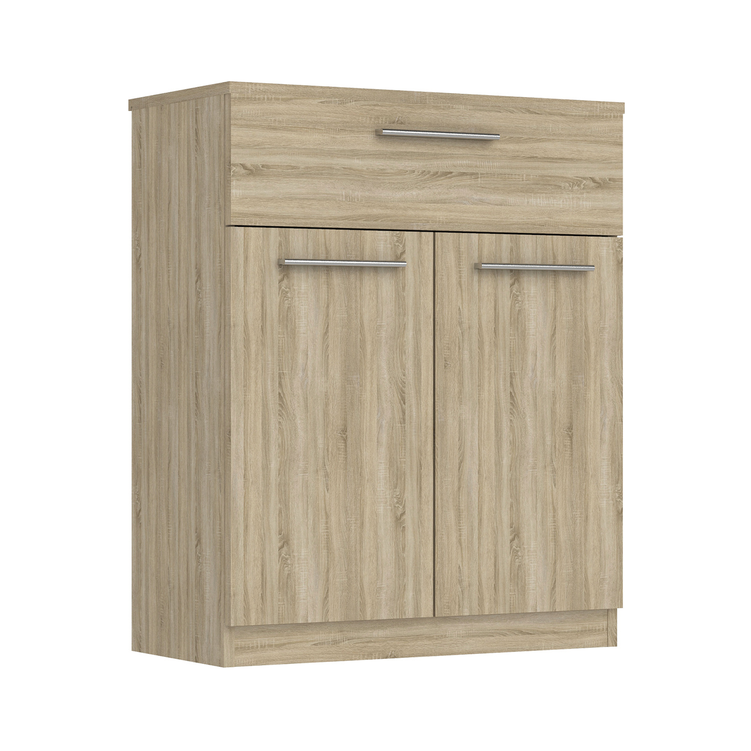 Komoda z lamina v barevném provedení dub sonoma. Komoda má 2 dveře, 1 zásuvka s kovovými pojezdy. Zboží dodáváme v demontu.