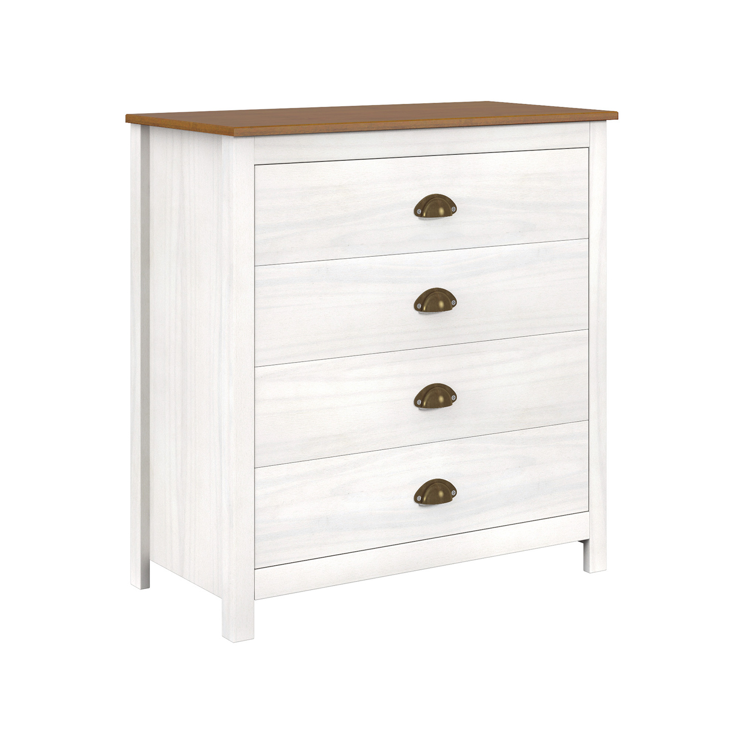 Komoda TOPAZIO z masivu borovice v matném provedení bílý/hnědý lak bude ozdobou každého pokoje. Masivní bílá komoda s hnědou vrchní deskou však nejlépe zapadne do vaší ložnice, kde přidá další nezbytný úložný prostor na prádlo a ručníky. Čtyři zásuvky s kovovými pojezdy a výraznými kovovými úchytkami pojmou nejrůznější věci. Zboží je dodáváno v demontu.