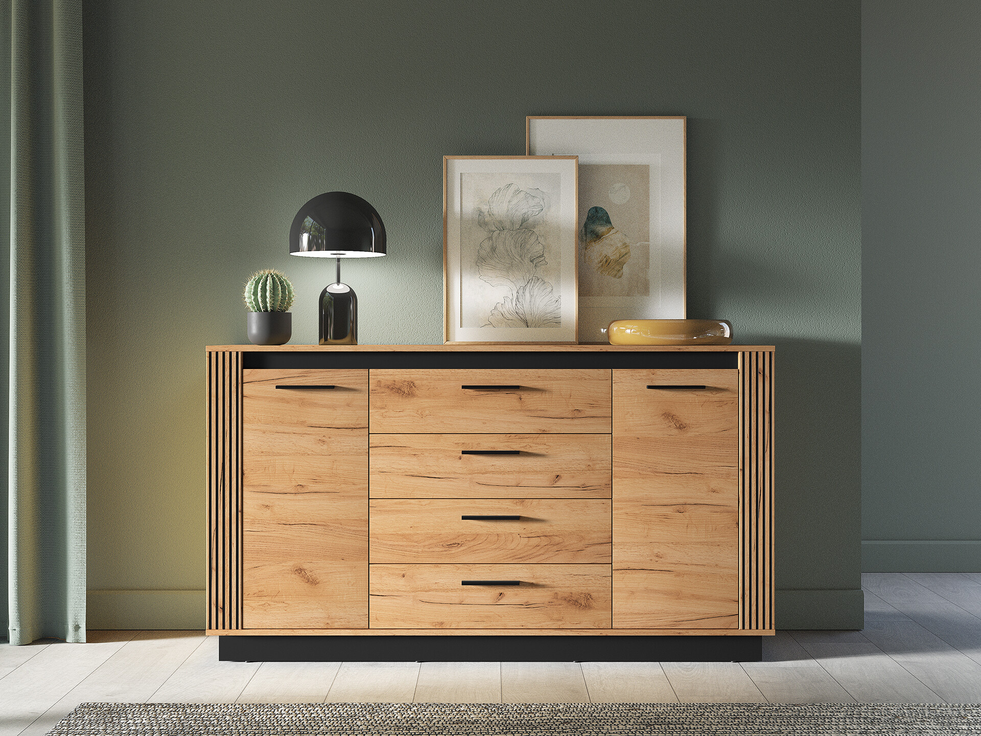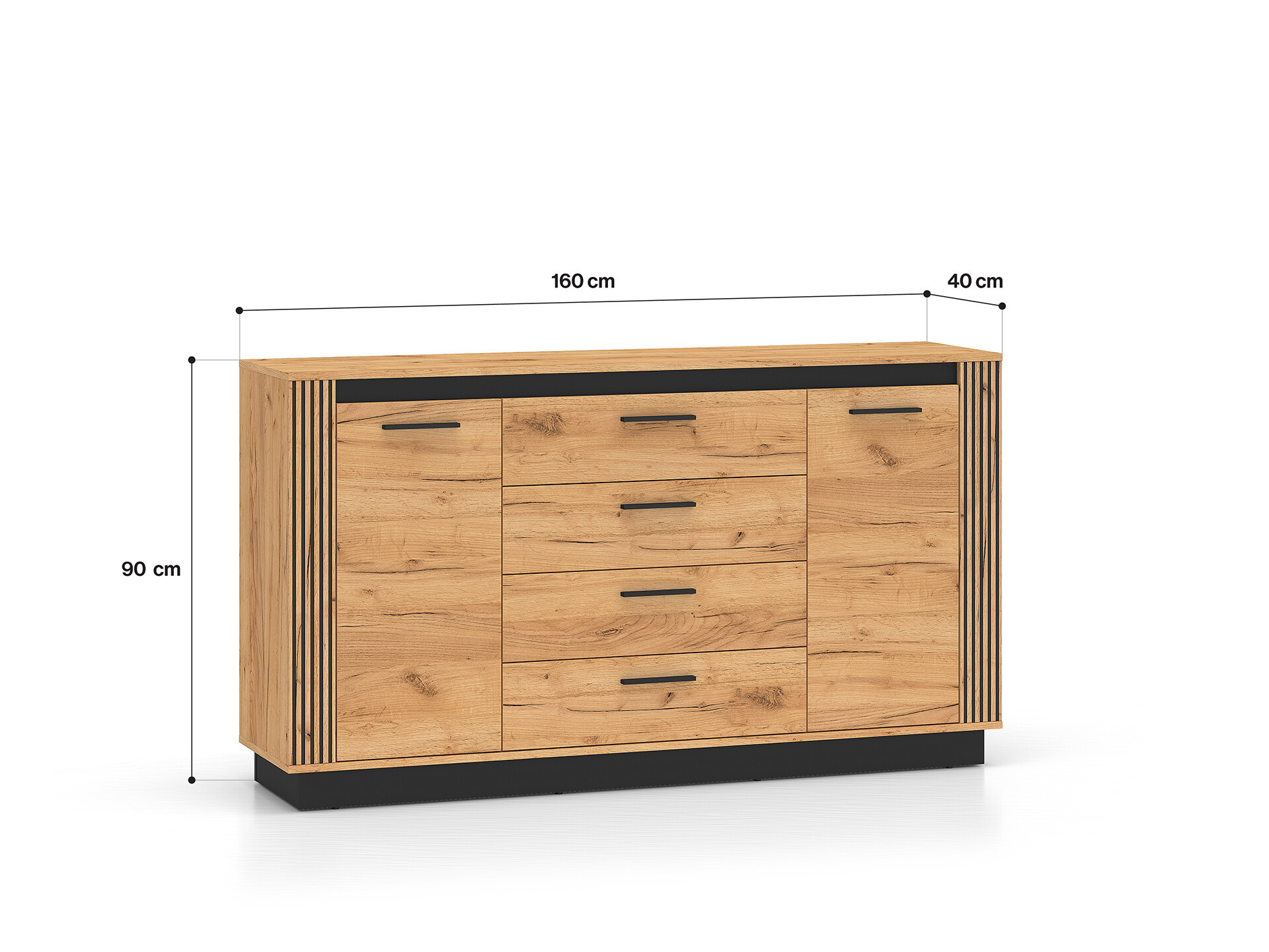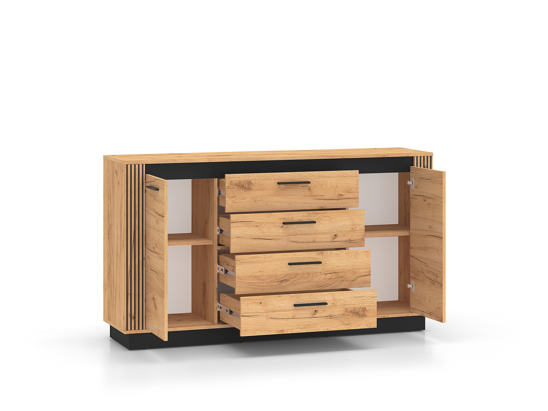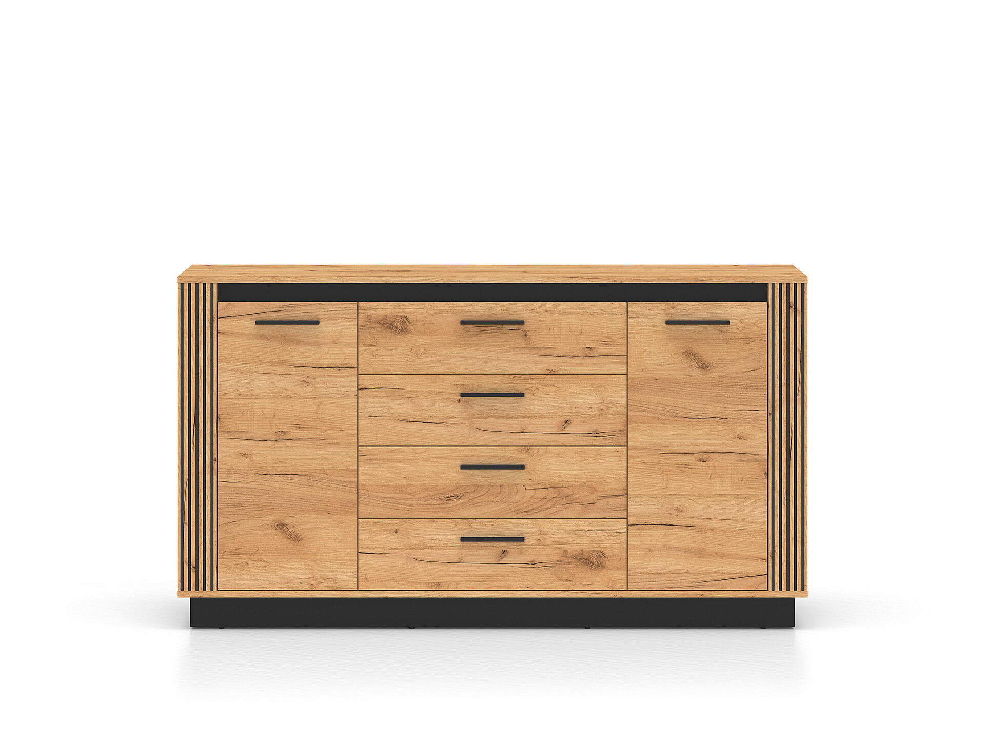 Komoda Urso je vyrobena z vysoce kvalitní laminované dřevotřískové desky s ABS hranou v provedení dub craft zlatý/ černá. Zboží dodáváme v demontu.