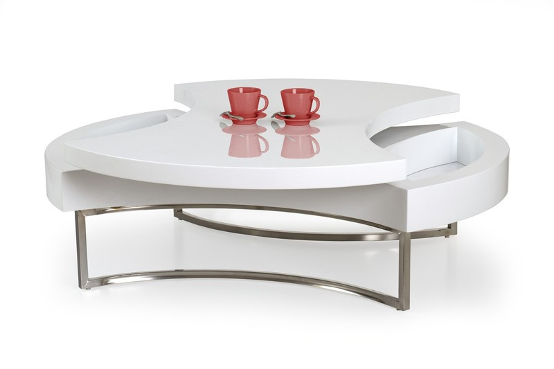 Vysoce moderní luxusní a praktický konferenční stolek Aurea je vyroben z lakovaného MDF bílé barvy a chromované oceli. Vrchní deska je otočná. Otočením desky se dostameme ke 2 úložným prostorům. Nohy jsou z chromované oceli. Maximální nosnost 20 kg. Zboží dodáváme v demontu.