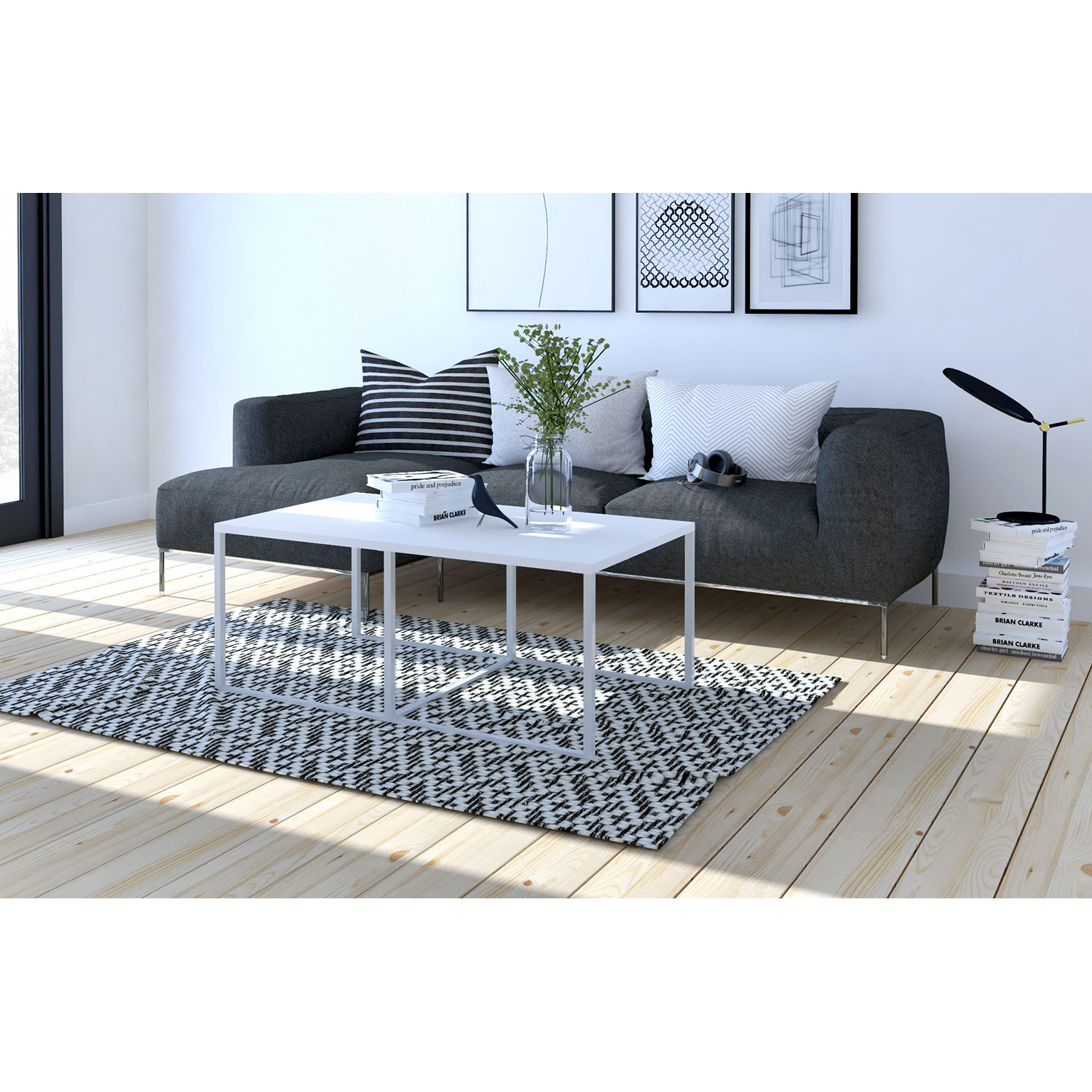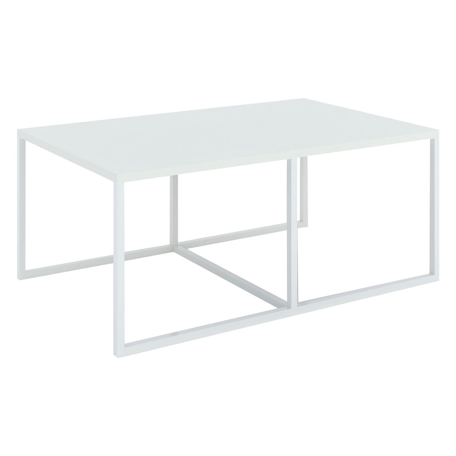 Konferenční stolek s kovovou konstrukcí čtvercových profilů 2x2 cm v barevném provedení bílá. Horní deska stolu v barevném provedení bílá. Zboží dodáváme v demontu.
